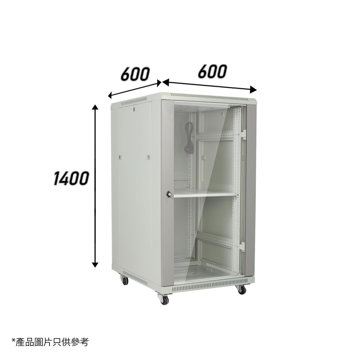 灰色27U標準網絡機櫃W600 X D600 X H1400mm 1-Fixed Shelf 2-Fan 30-Screw 486mm(MC286-6627G)