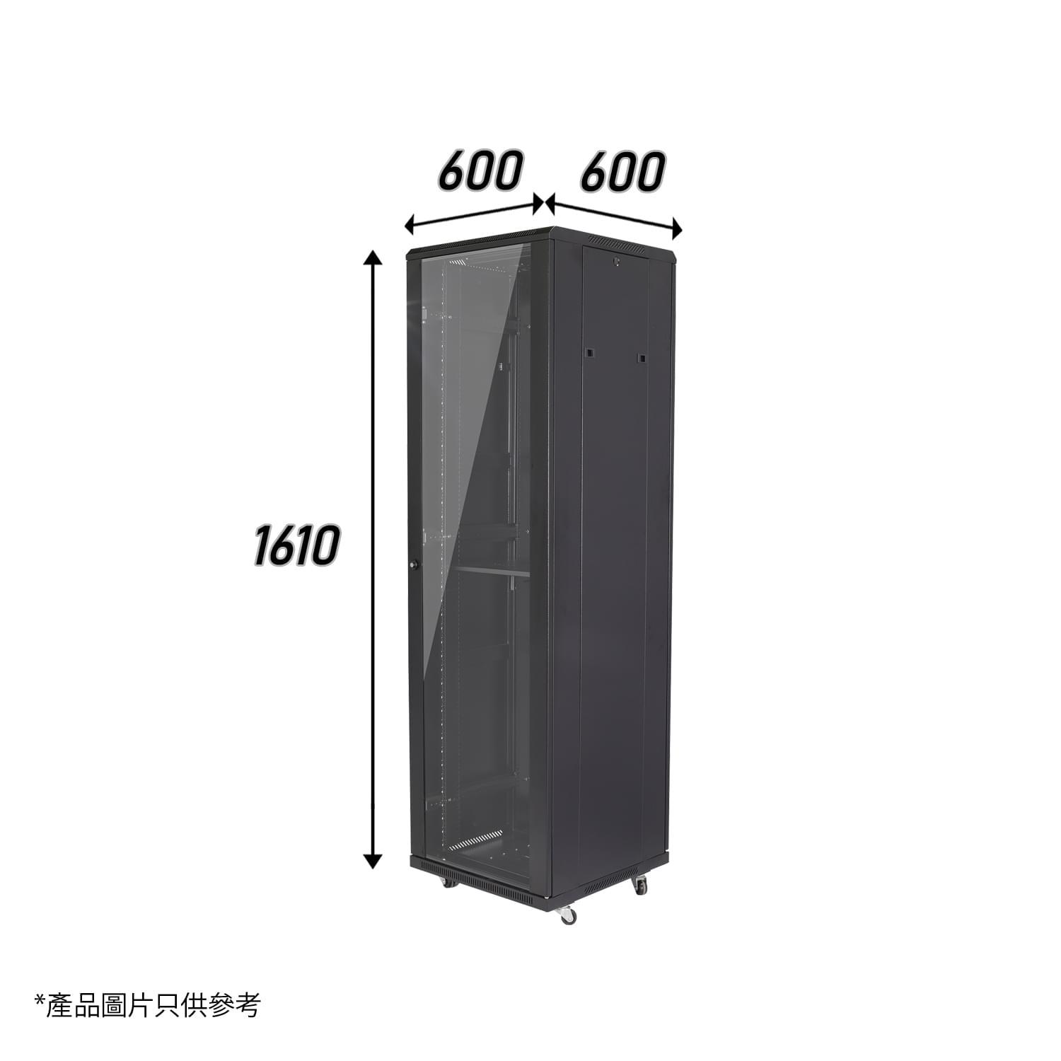 黑色32U標準網絡機櫃W600 X D600 X H1610mm 1-Fixed Shelf 2-Fan 50-Screw 486mm(MC286-6632B)