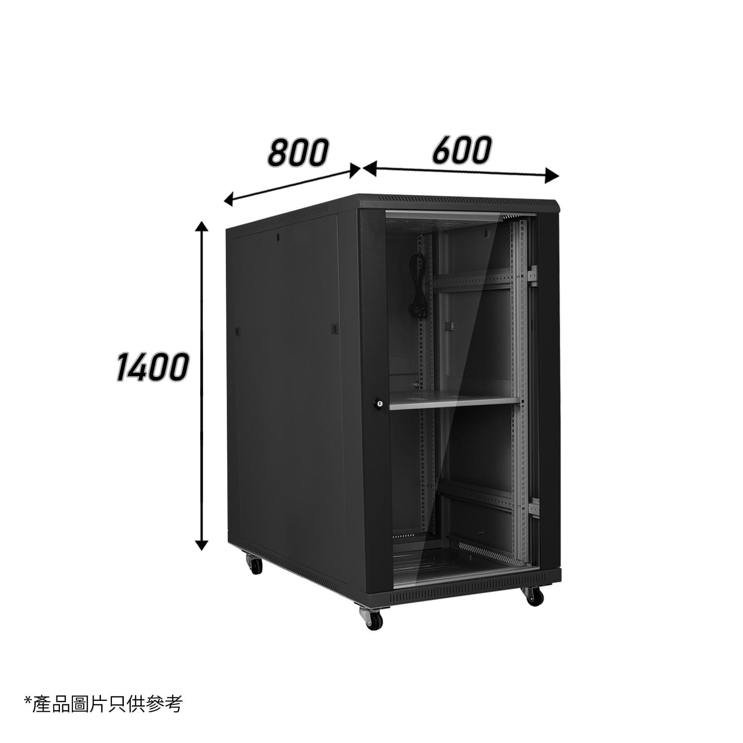 黑色27U標準網絡機櫃W600 X D800 X H1400mm 1-Fixed Shelf 4-Fan 30-Screw 486mm(MC286-6827B)