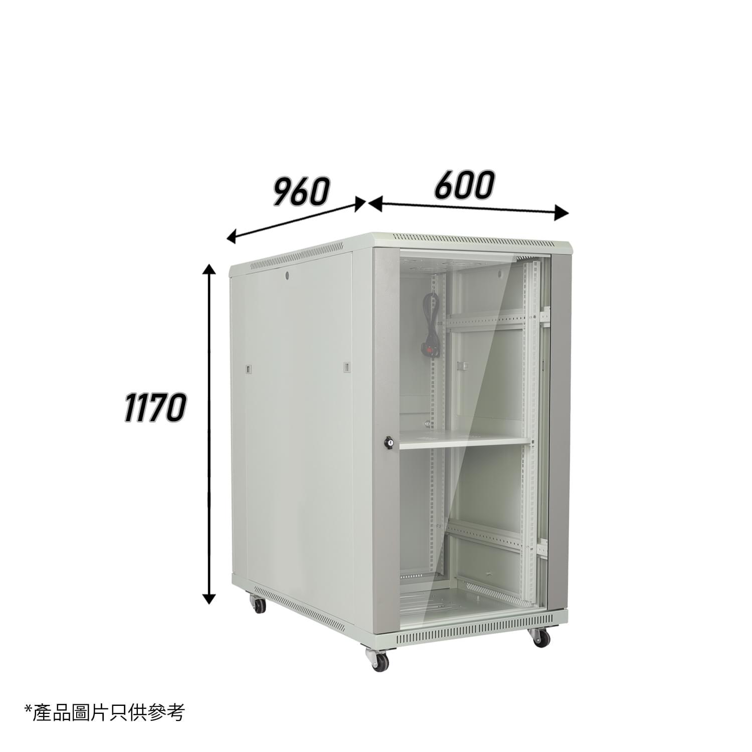 灰色22U標準網絡機櫃W600 X D960 X H1170mm 1-Fixed Shelf 4-Fan 30-Screw 486mm(MC286-6922G)