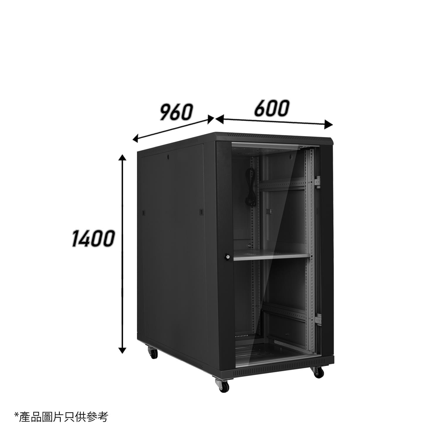 黑色27U標準網絡機櫃W600 X D960 X H1400mm 1-Fixed Shelf 4-Fan 30-Screw 486mm(MC286-6927B)