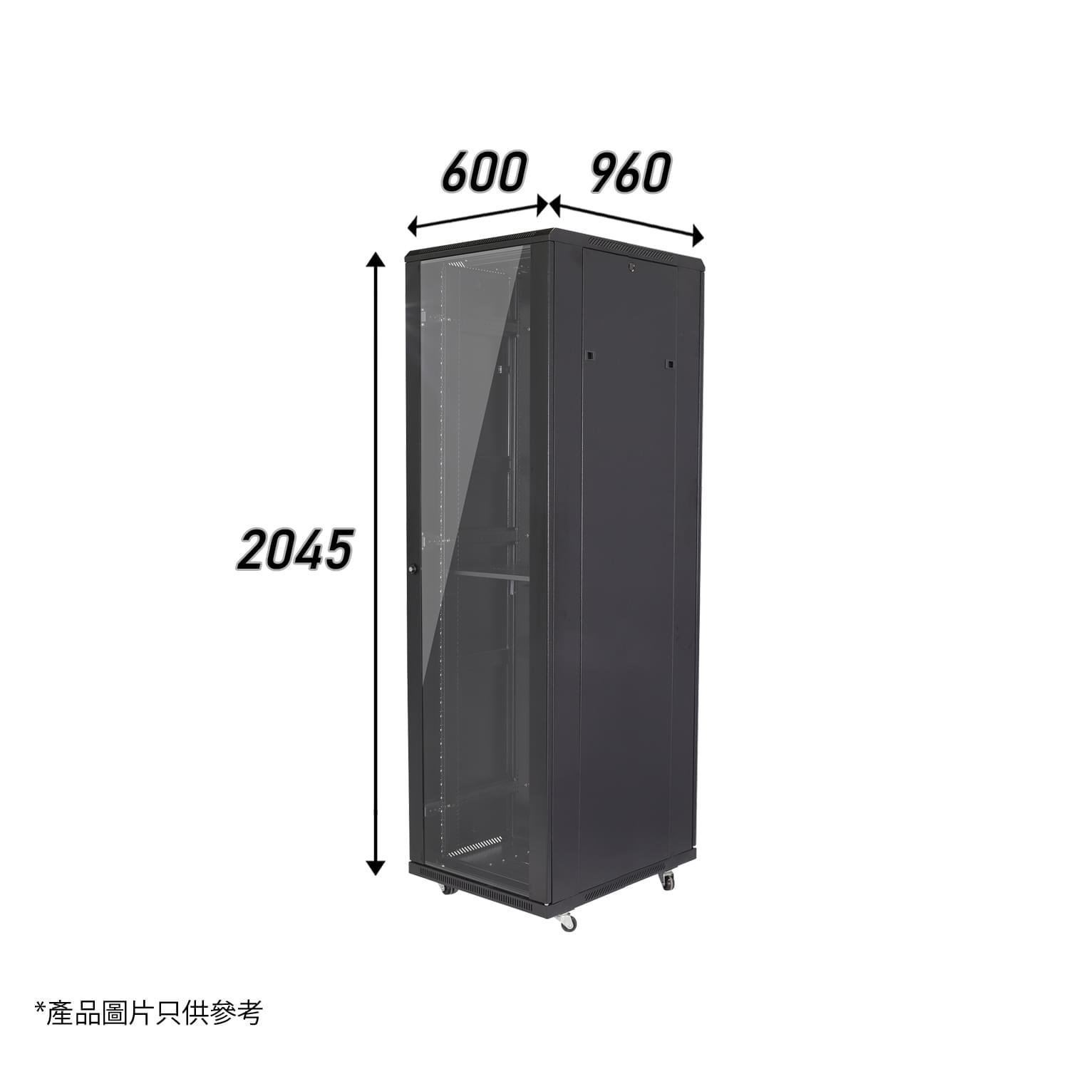 黑色42U標準網絡機櫃W600 X D960 X H2045mm 1-Fixed Shelf 4-Fan 50-Screw 486mm特寬內籠(MC286-6942B)