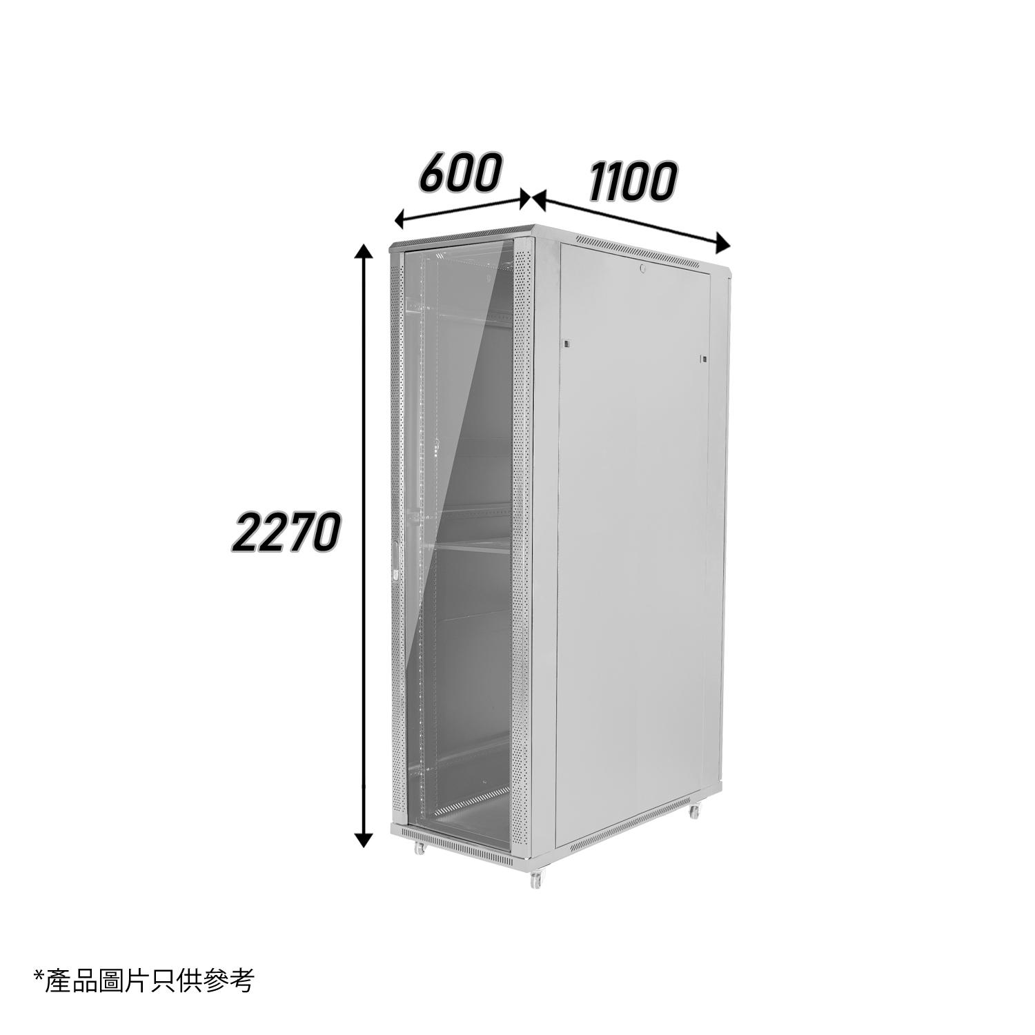 灰色47U專業網絡機櫃W600 X D1100 X H2270mm 1-Fixed Shelf 4-Fan 50-Screw 486mm特寬內籠(MC386-61147G)