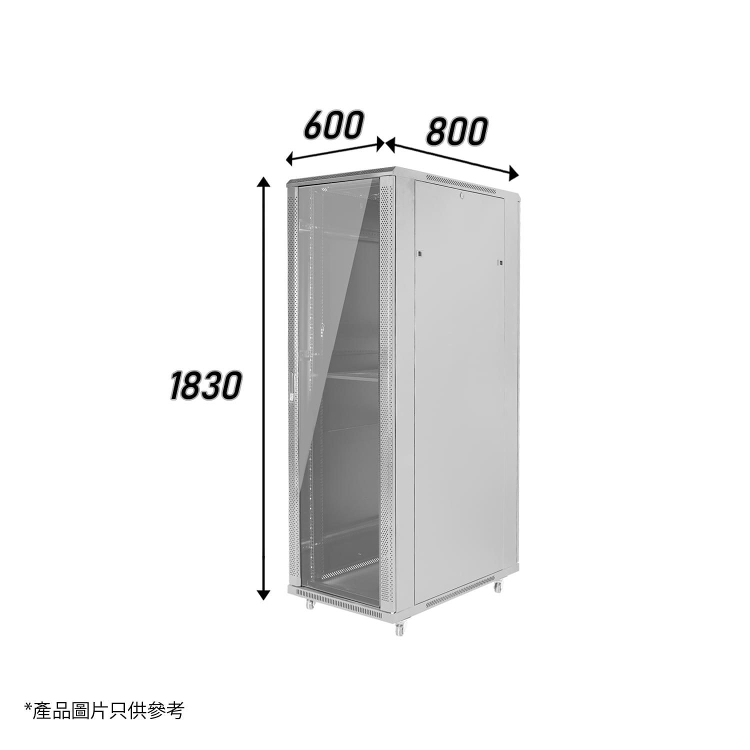 灰色37U專業網絡機櫃W600 X D800 X H1830mm 1-Fixed Shelf 4-Fan 50-Screw 486mm特寬內籠(MC386-6837G)