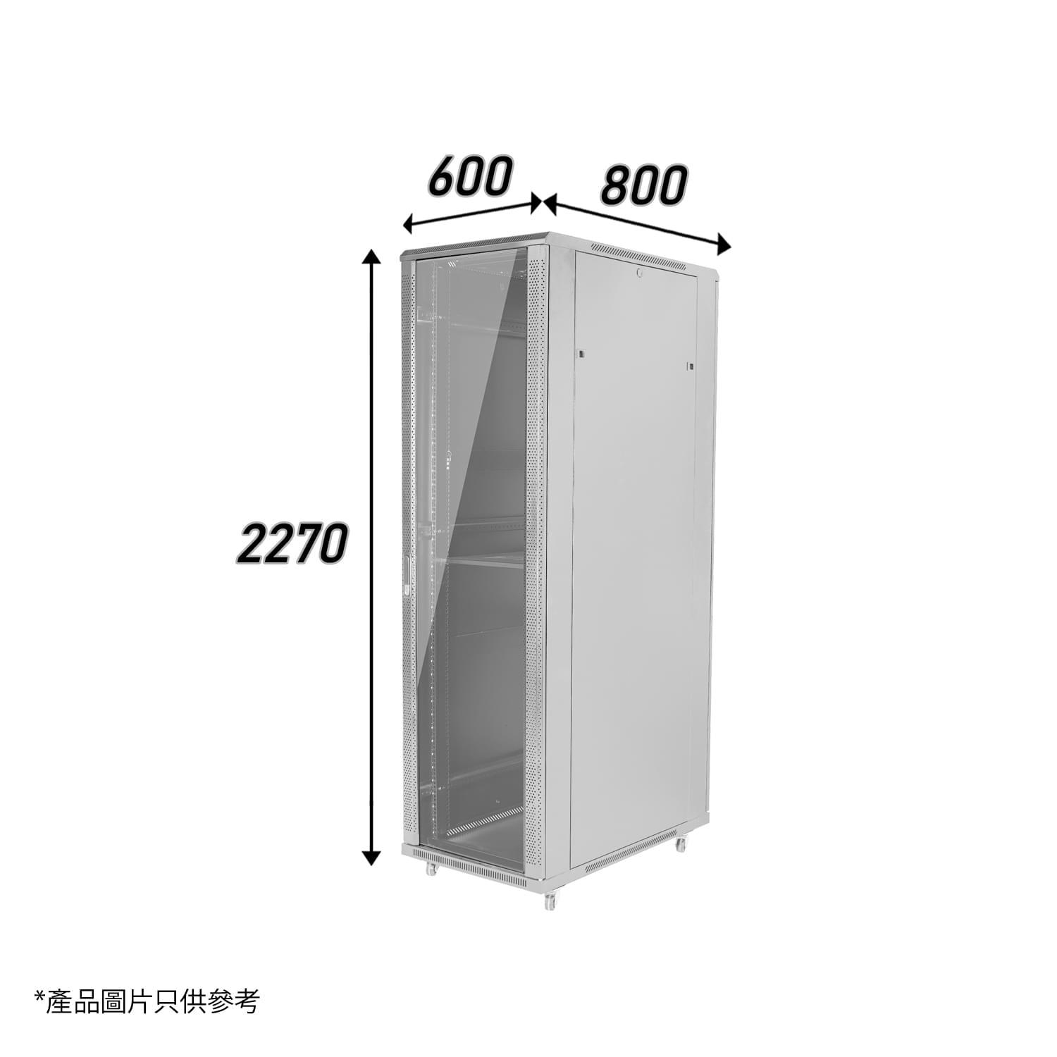 灰色47U標準網絡機櫃W600 X D800 X H2270mm 1-Fixed Shelf 4-Fan 50-Screw 486mm特寬內籠(MC386-6847G)