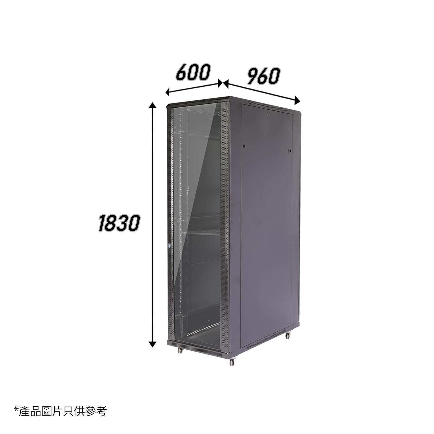 黑色37U專業網絡機櫃W600 X D960 X H1830mm 1-Fixed Shelf 4-Fan 50-Screw 486mm特寬內籠,企業學校政府豪宅機房熱賣(MC386-6937B)