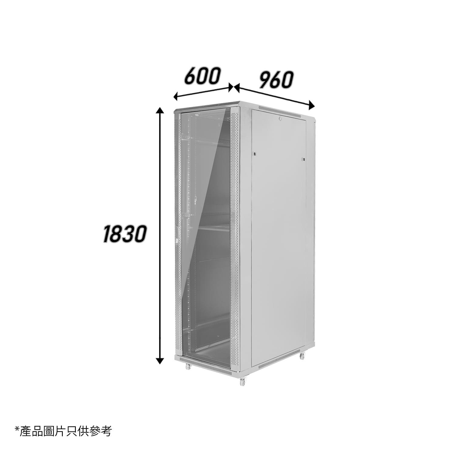 灰色37U專業網絡機櫃W600 X D960 X H1830mm 1-Fixed Shelf 4-Fan 50-Screw 486mm特寬內籠(MC386-6937G)