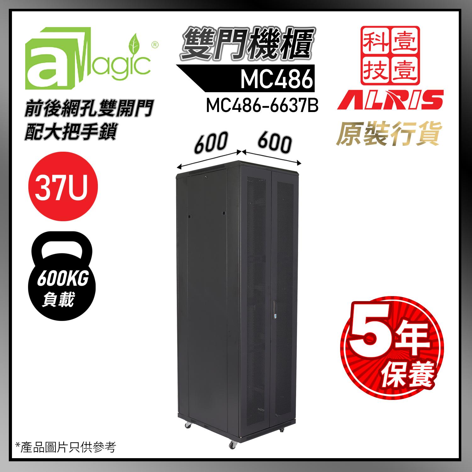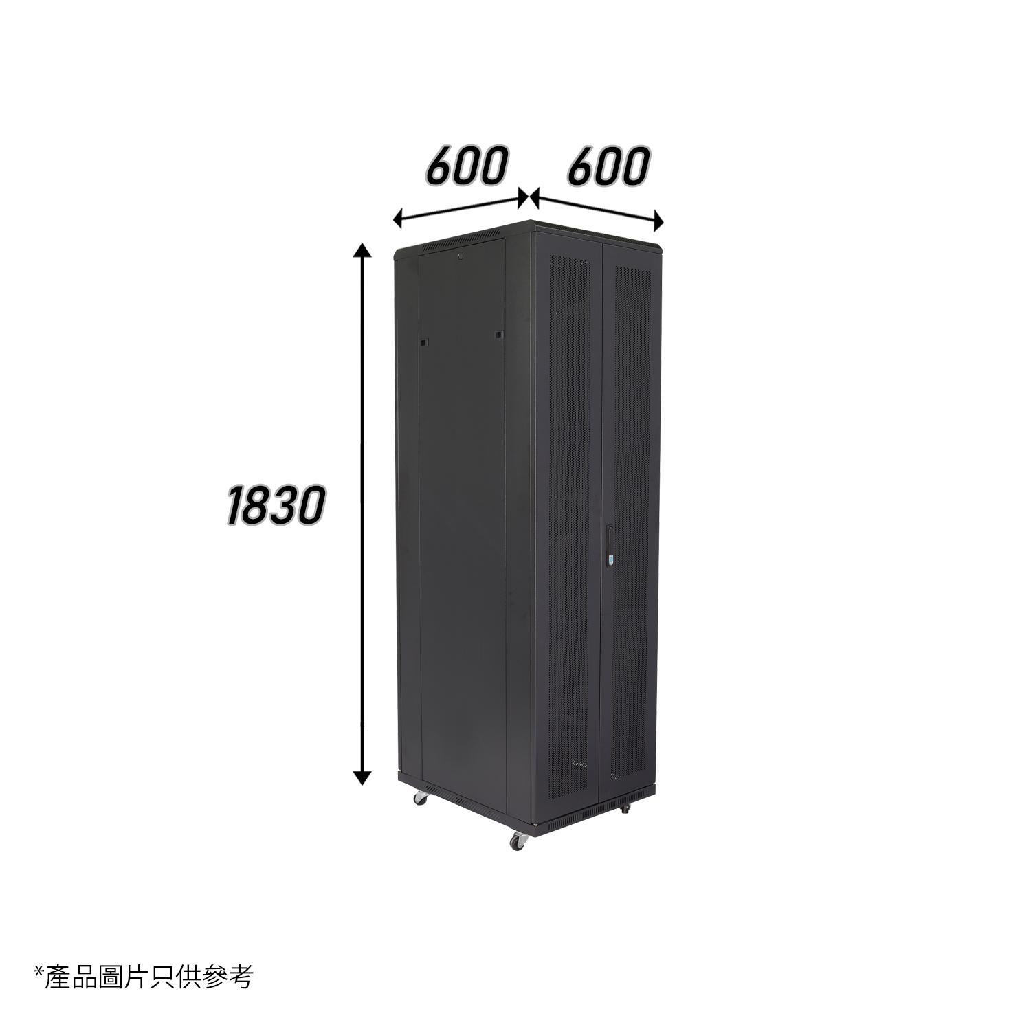 黑色37U雙開網門網絡機櫃W600 X D600 X H2045mm 1-Fixed Shelf 4-Fan 50-Screw 486mm特寬內籠(MC486-6637B)