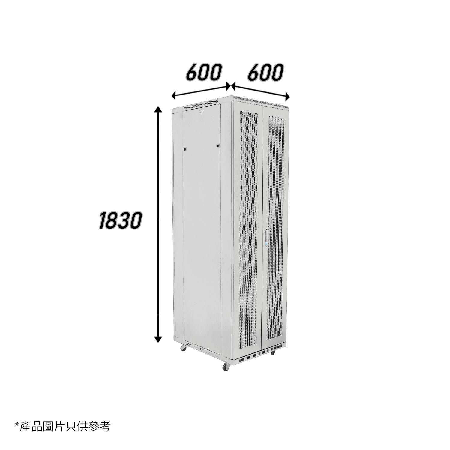 灰色37U雙開網門網絡機櫃W600 X D600 X H2045mm 1-Fixed Shelf 4-Fan 50-Screw 486mm特寬內籠(MC486-6637G)