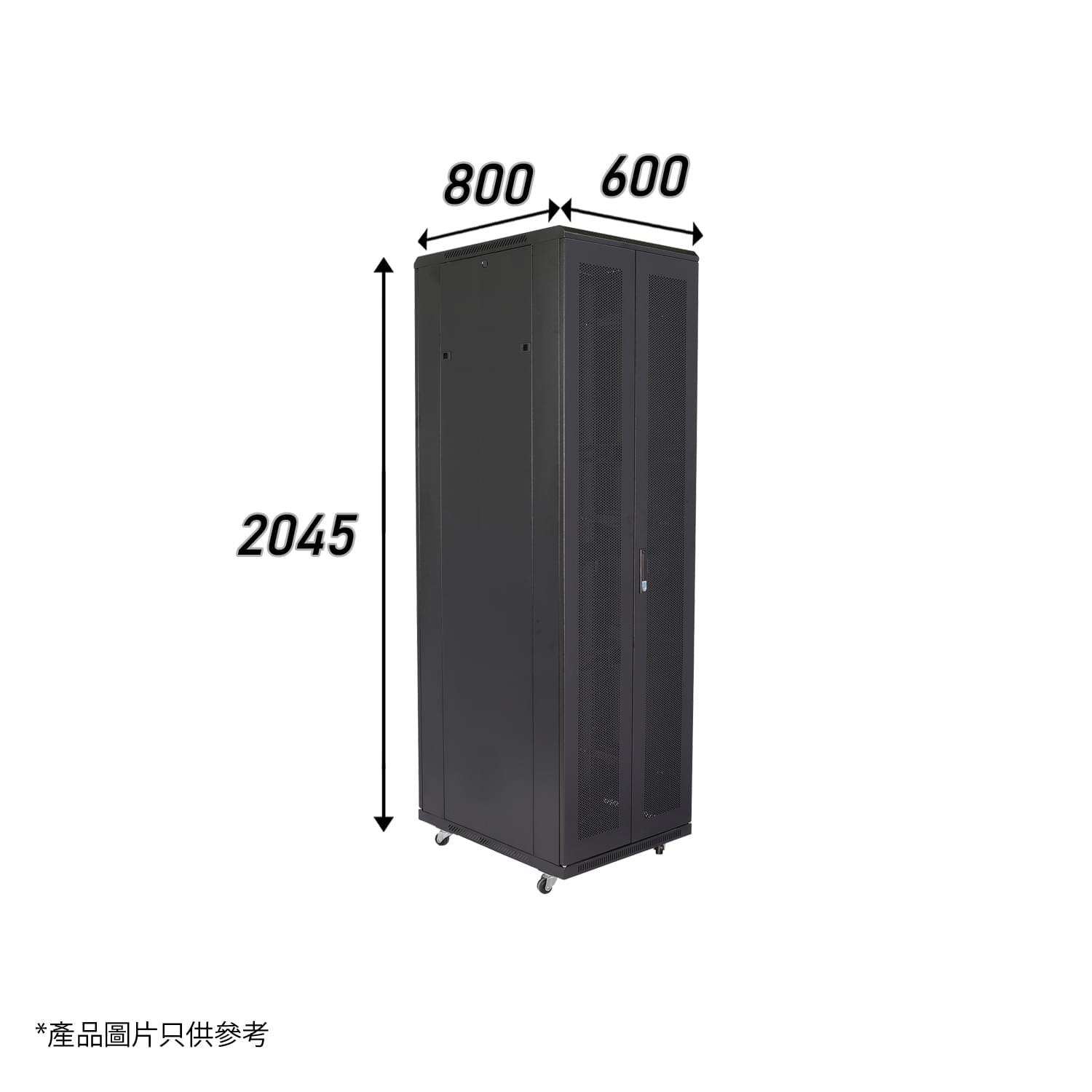 黑色42U雙開網門網絡機櫃W600 X D800 X H2045mm 1-Fixed Shelf 4-Fan 50-Screw 486mm特寬內籠,企業學校政府豪宅機房熱賣(MC486-6842B)
