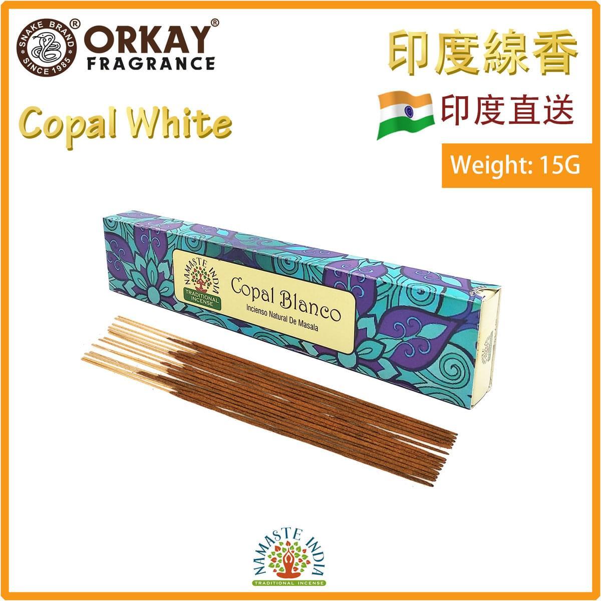 (15克四方形盒裝)COPAL-WHITE味印度進口純天然手工制線香棒 香枝 瑜伽冥想專用香薰 OK-NAMASTE-15G-COPAL-WHITE