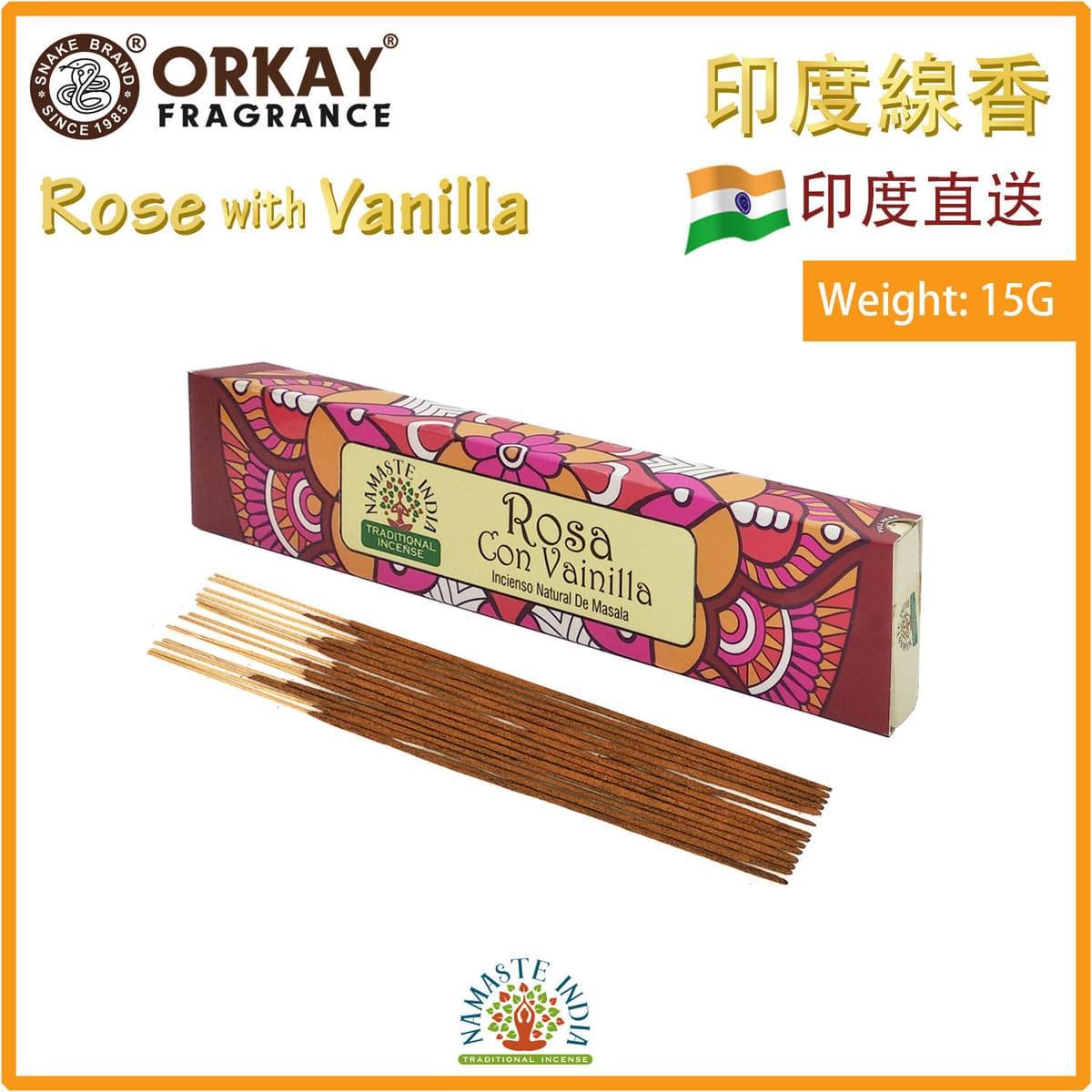 (15克四方形盒裝)ROSE-VANILLA味印度進口純天然手工制線香棒 香枝 瑜伽冥想專用香薰 OK-NAMASTE-15G-ROSE-VANILLA