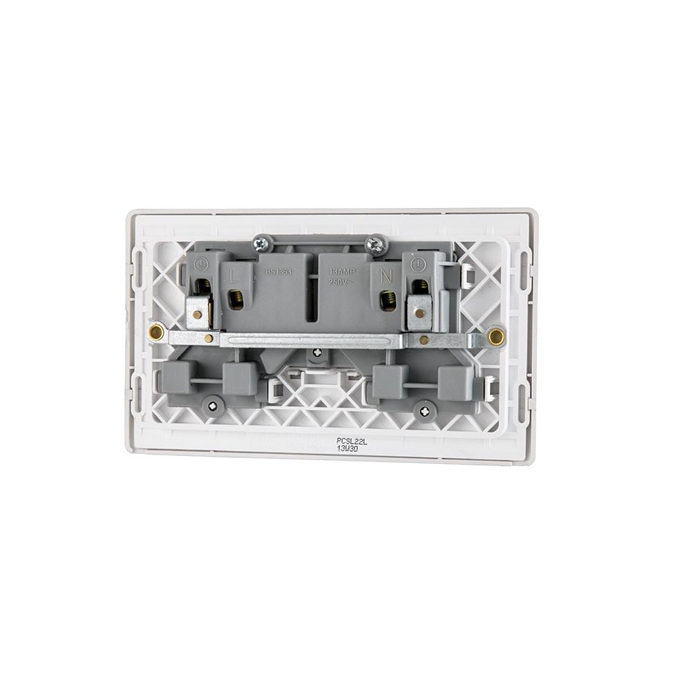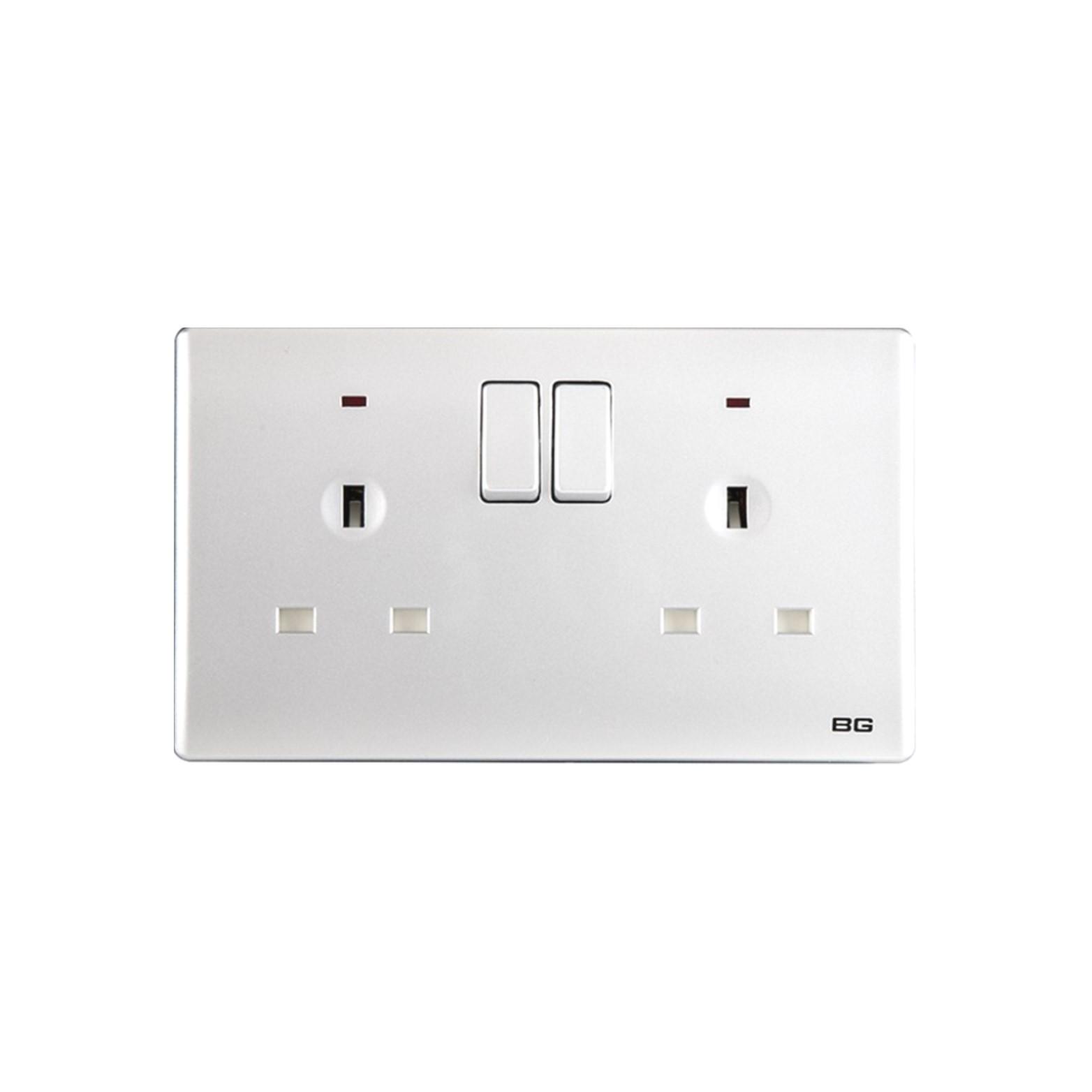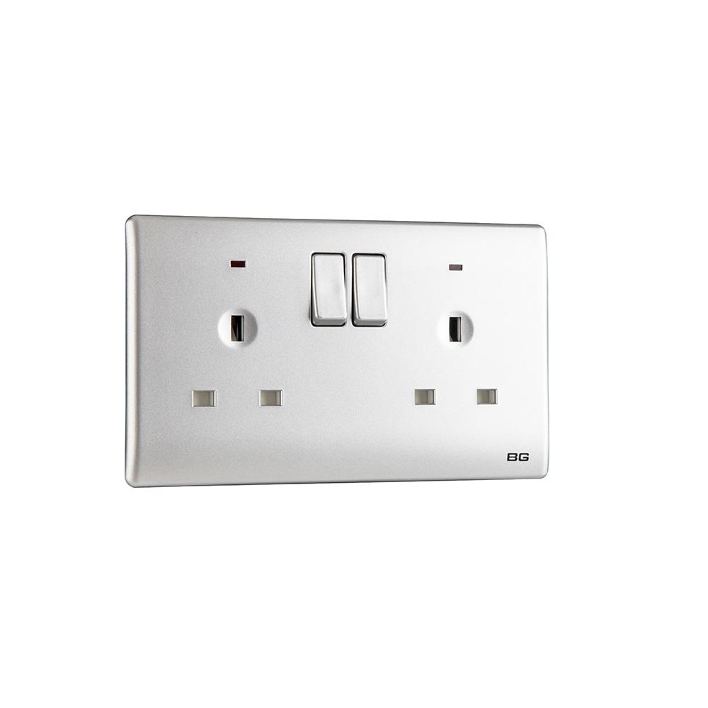 銀色纖薄雙位開關牆壁插座帶指示燈