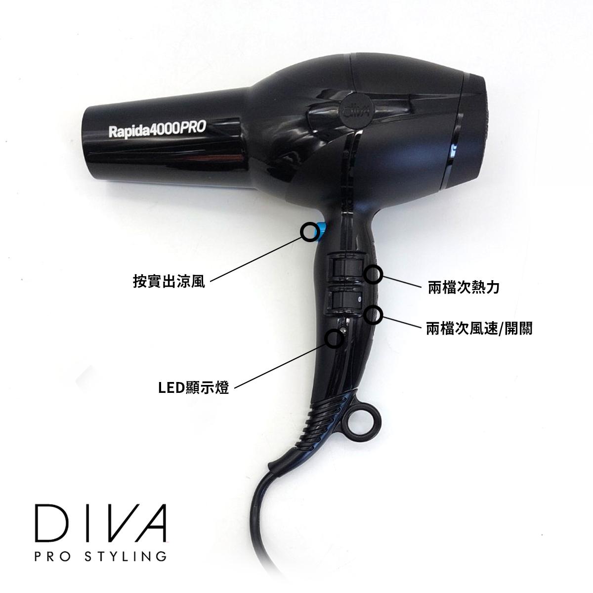 【歐州名牌】黑色DIVA專業造型Rapida4000專業速乾冷暖風筒(PRO-109)