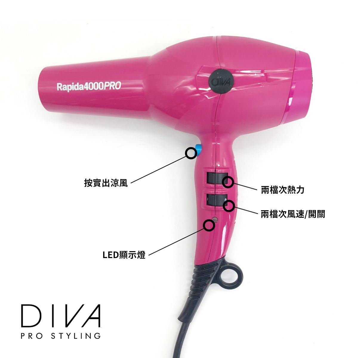 【歐州名牌】品紅色DIVA專業造型Rapida4000專業速乾冷暖風筒(PRO-110)