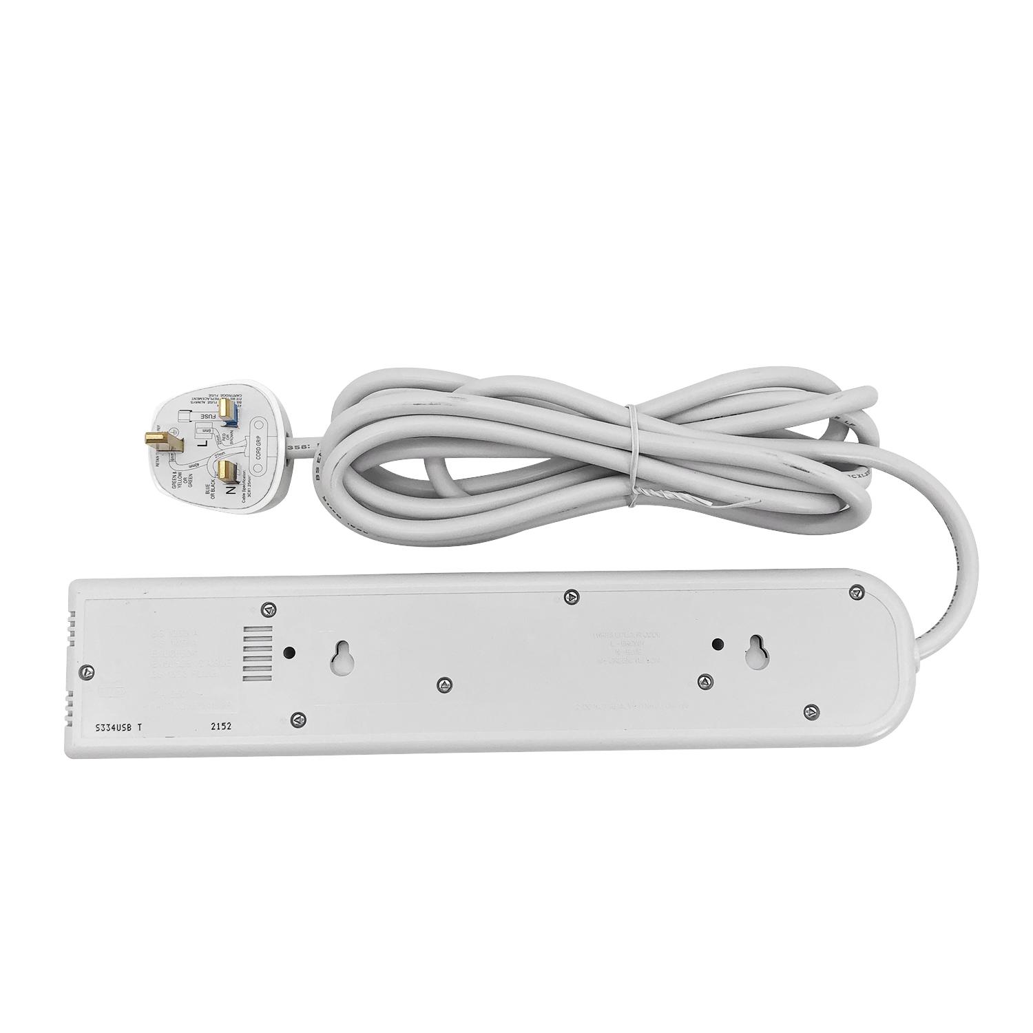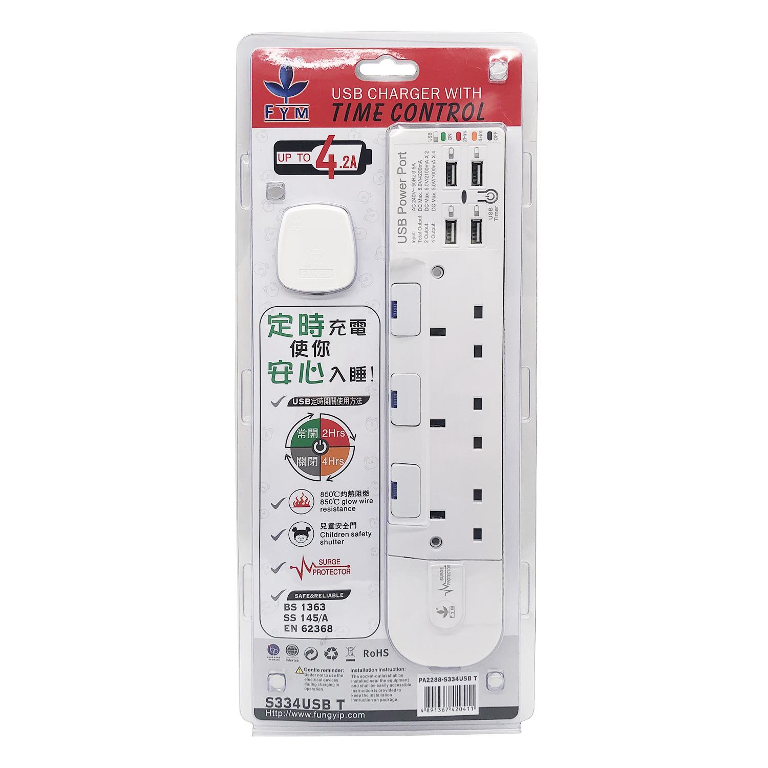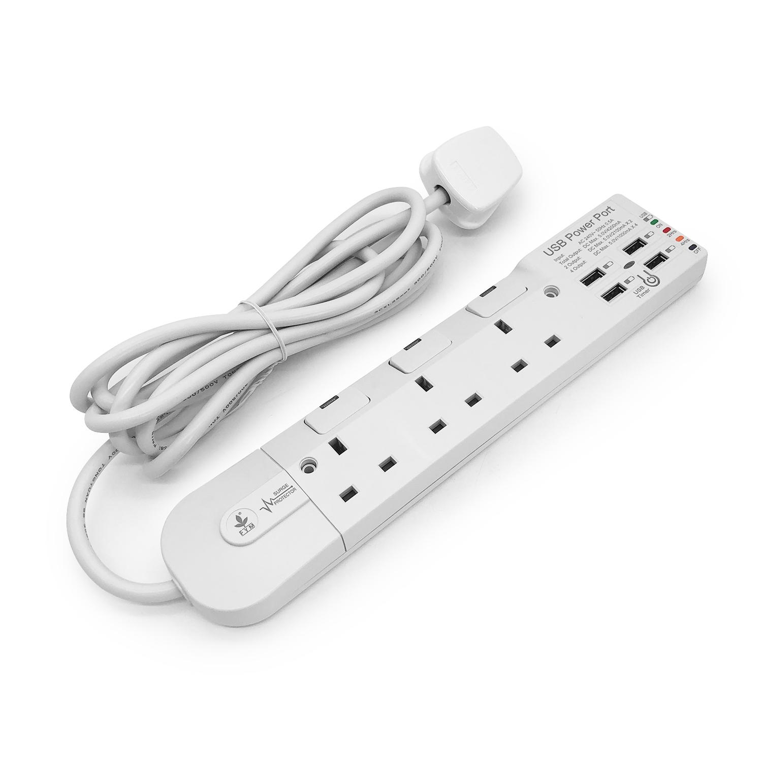 3位13A獨立LED開關+4USB(Type-Ax4)USB時間制3米線防雷拖板