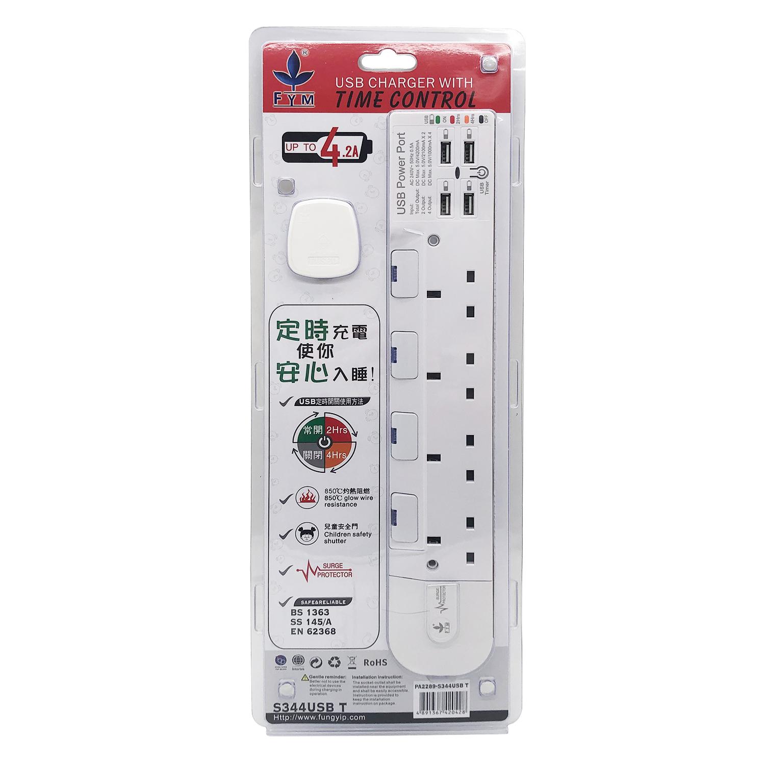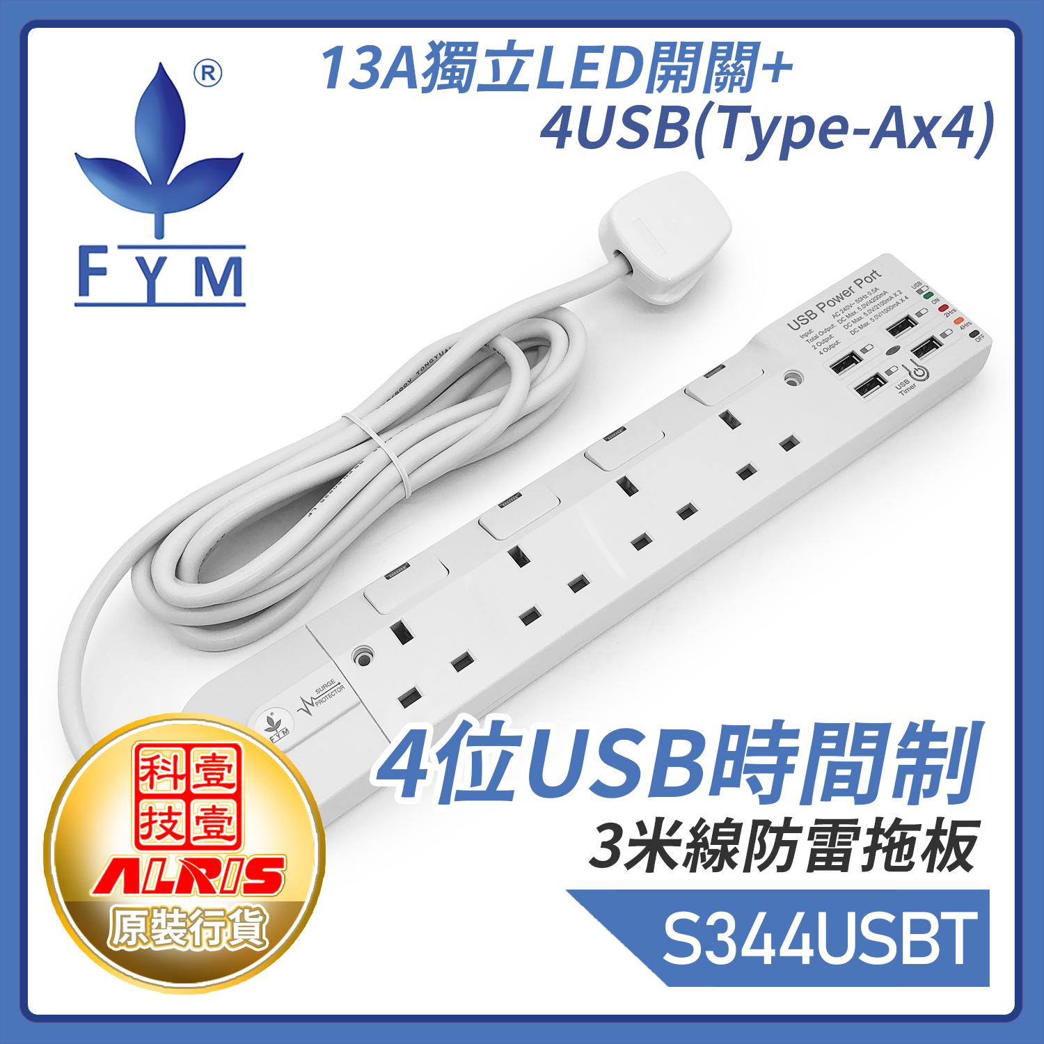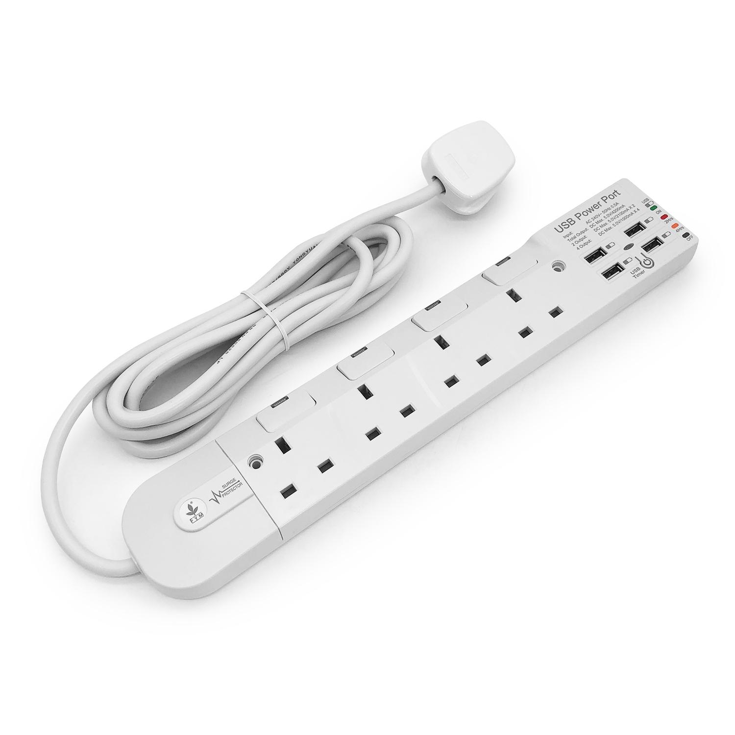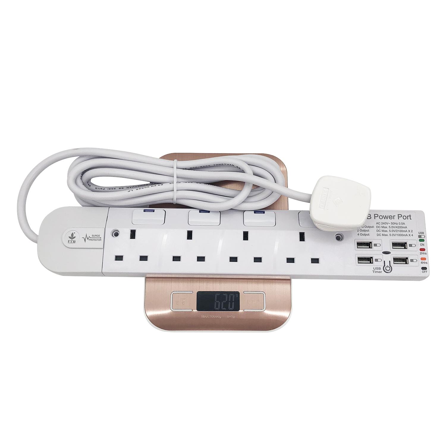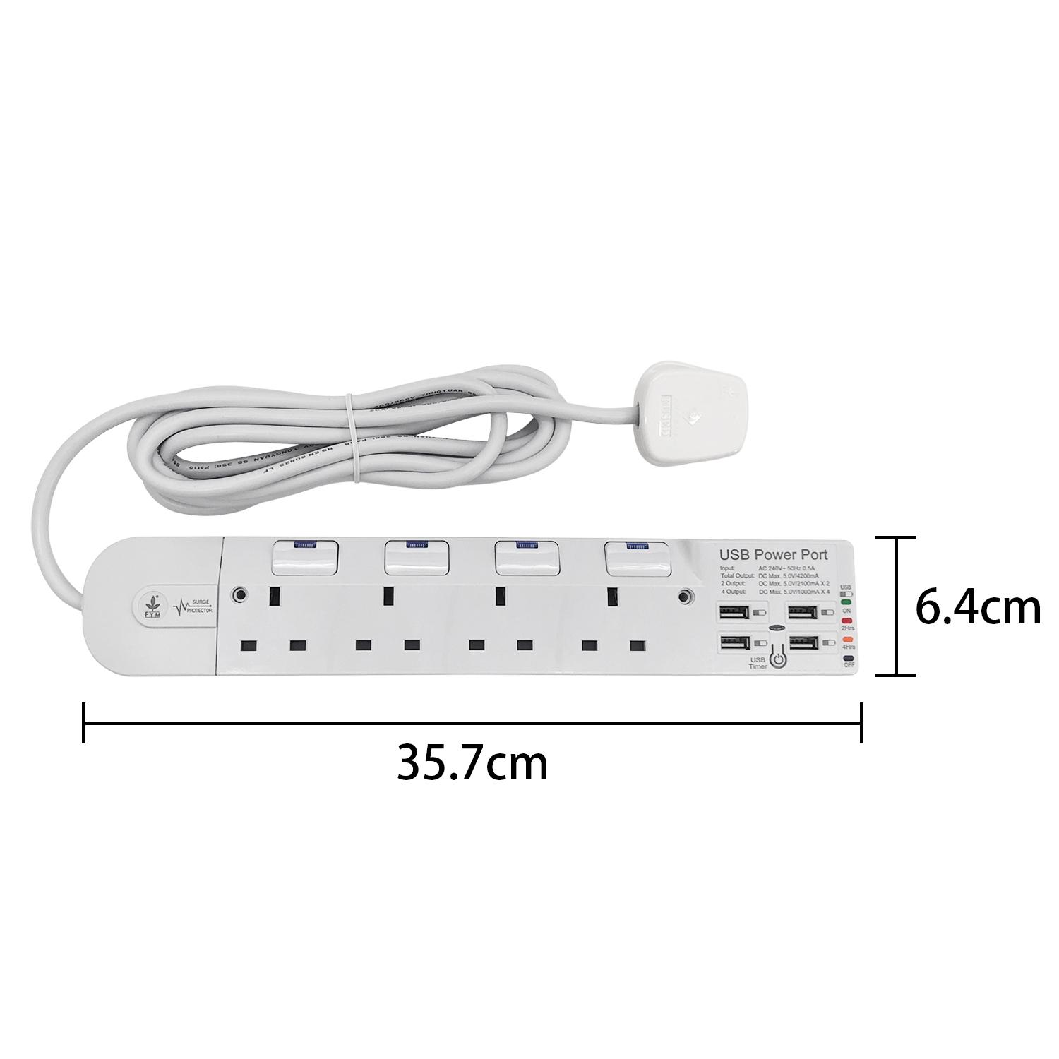 4位13A獨立LED開關+4USB(Type-Ax4)USB時間制3米線防雷拖板