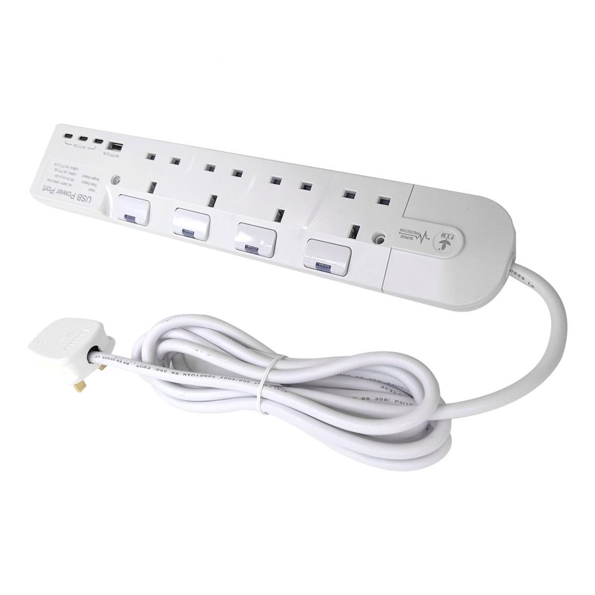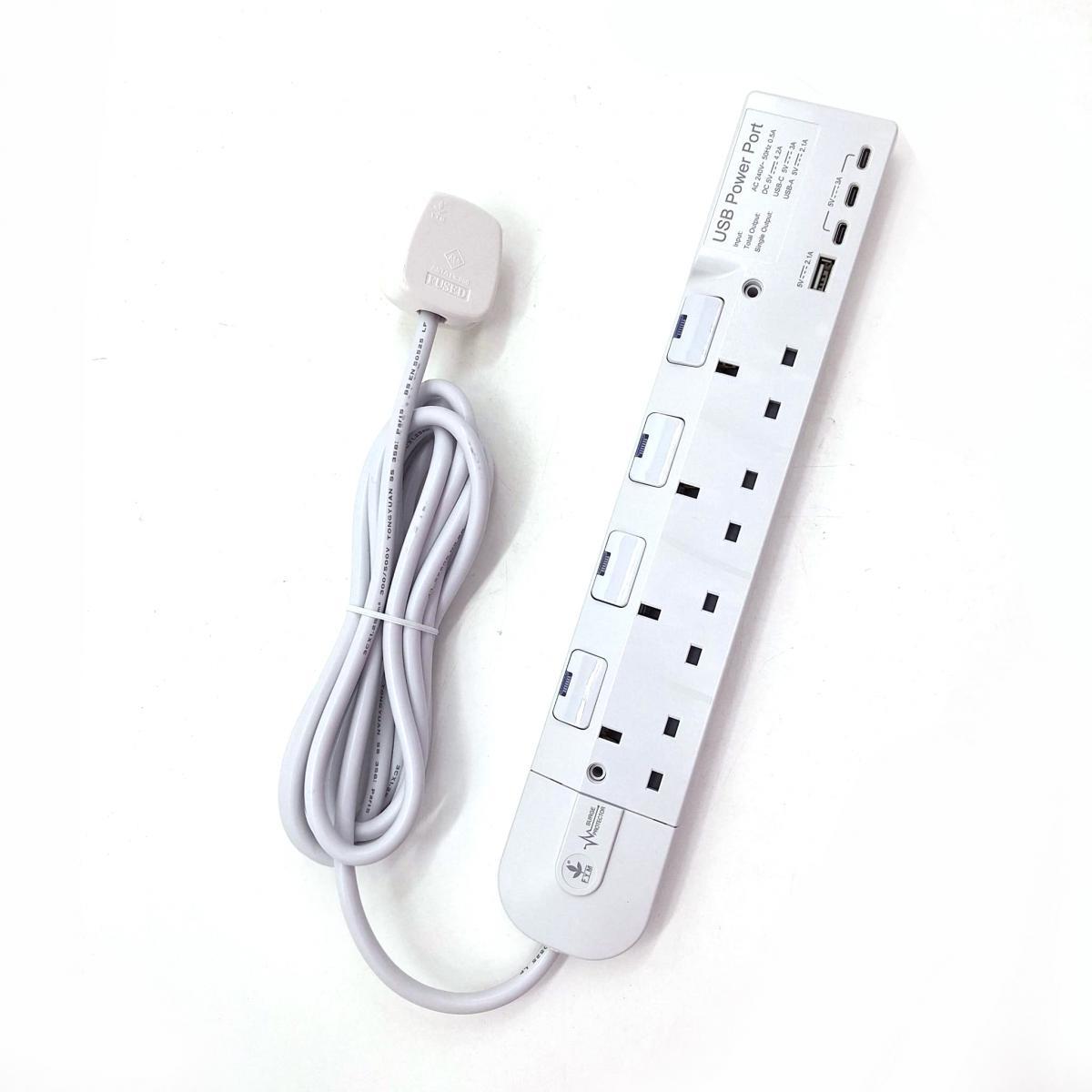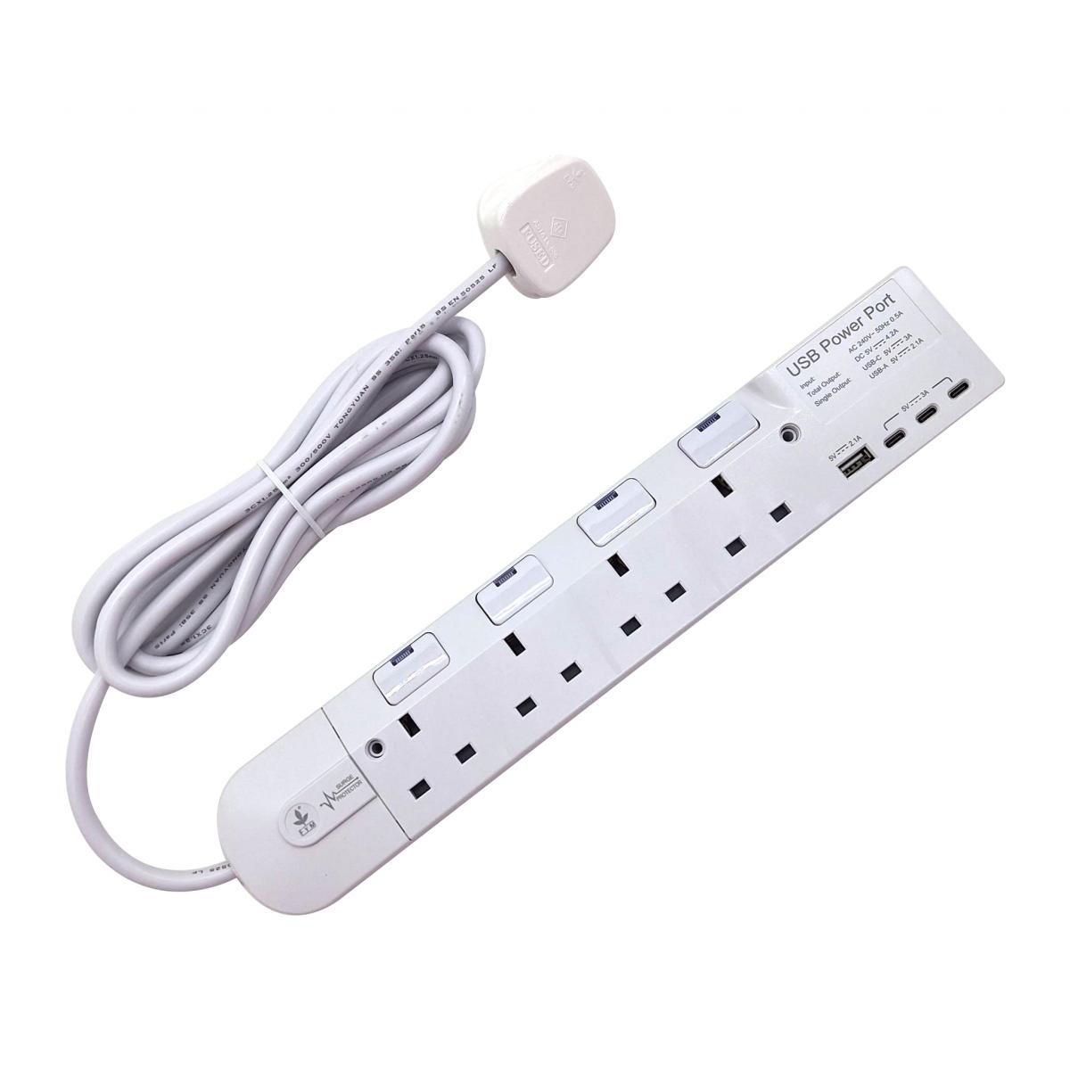 4位13A獨立LED開關+4USB(Type-Ax1+Type-Cx3)3米線防雷拖板