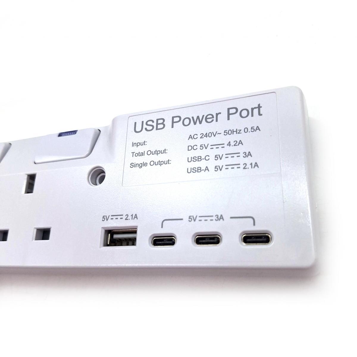 2. Type-A x 1 (5V2.1A) + Type C x 3 (5V3A)