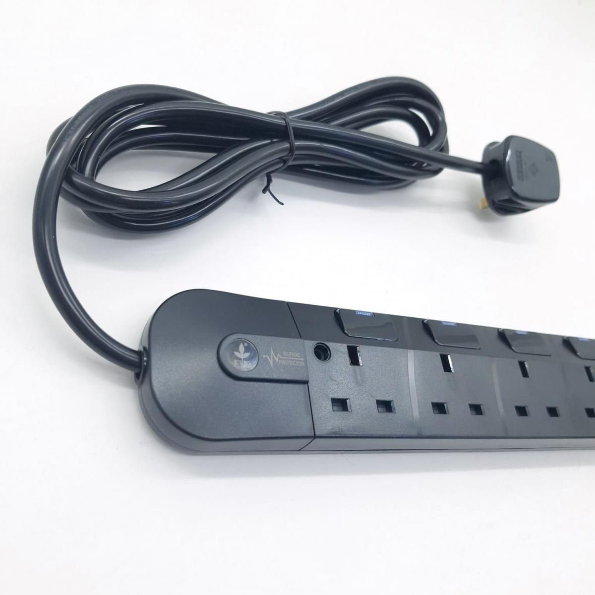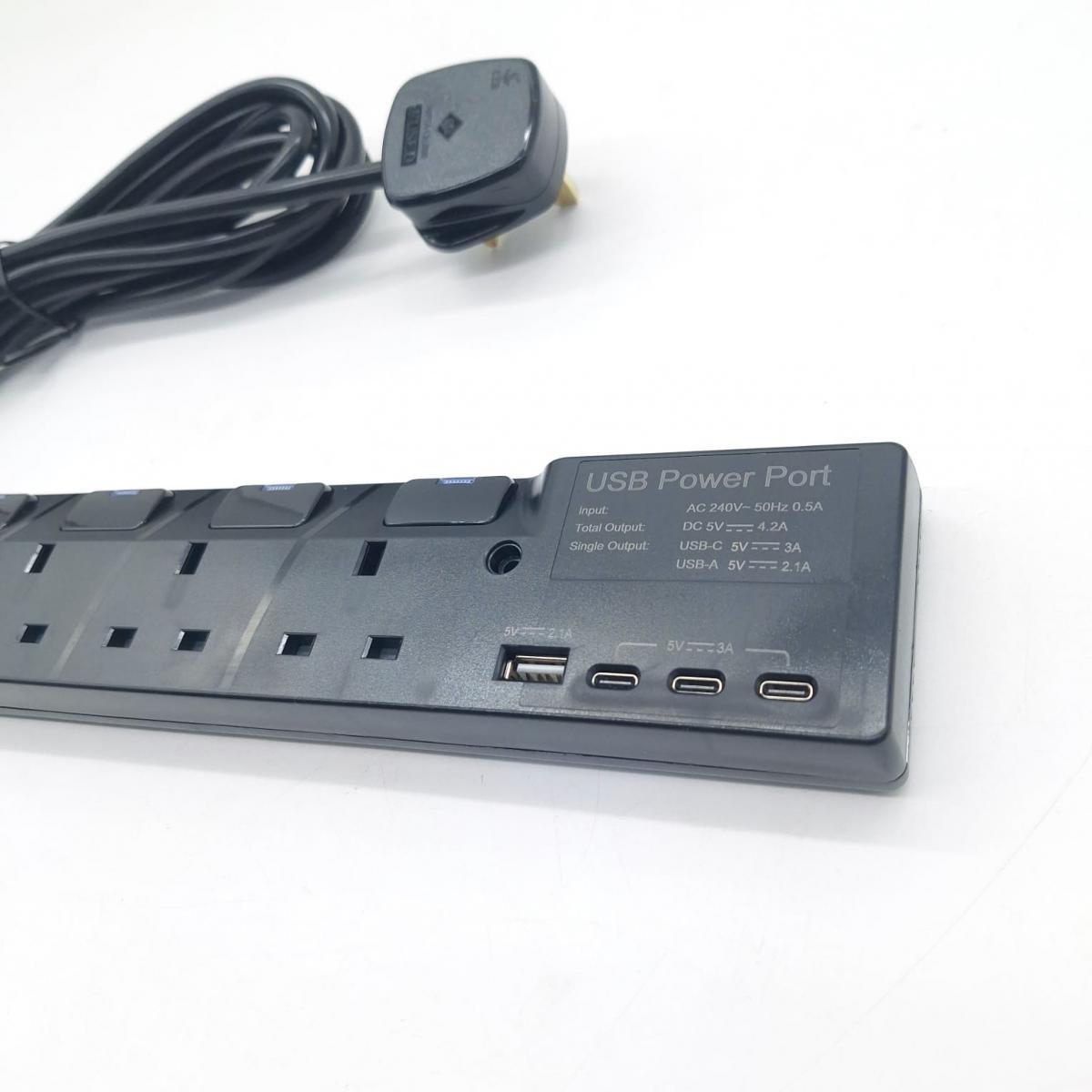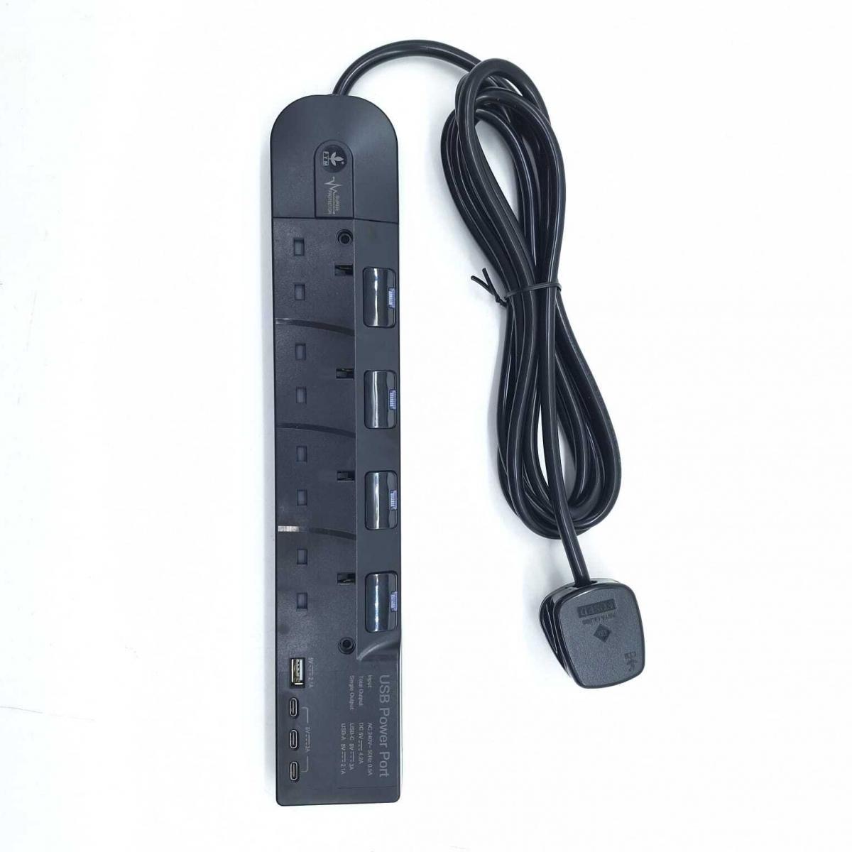 黑色 4位13A獨立LED開關+4USB(Type-Ax1+Type-Cx3)3米線防雷拖板