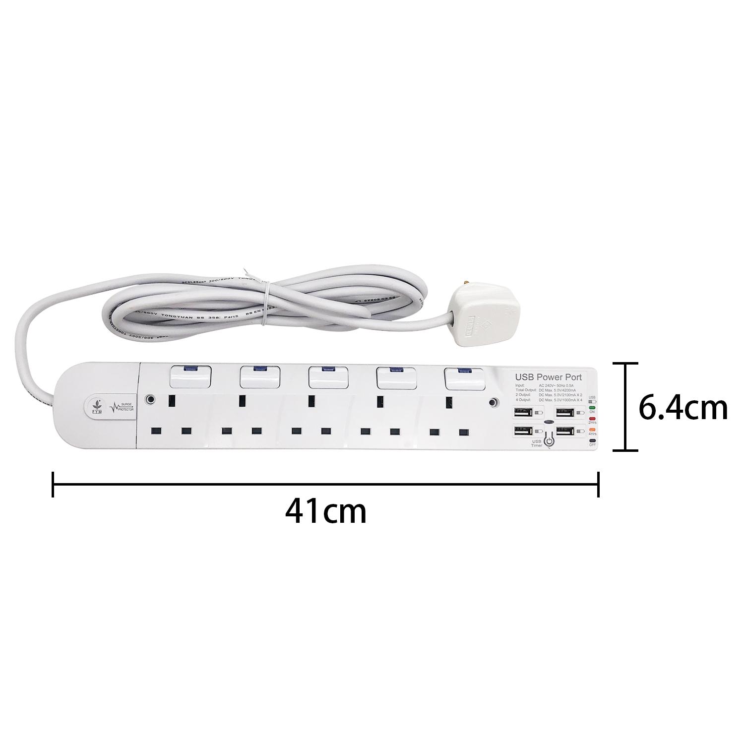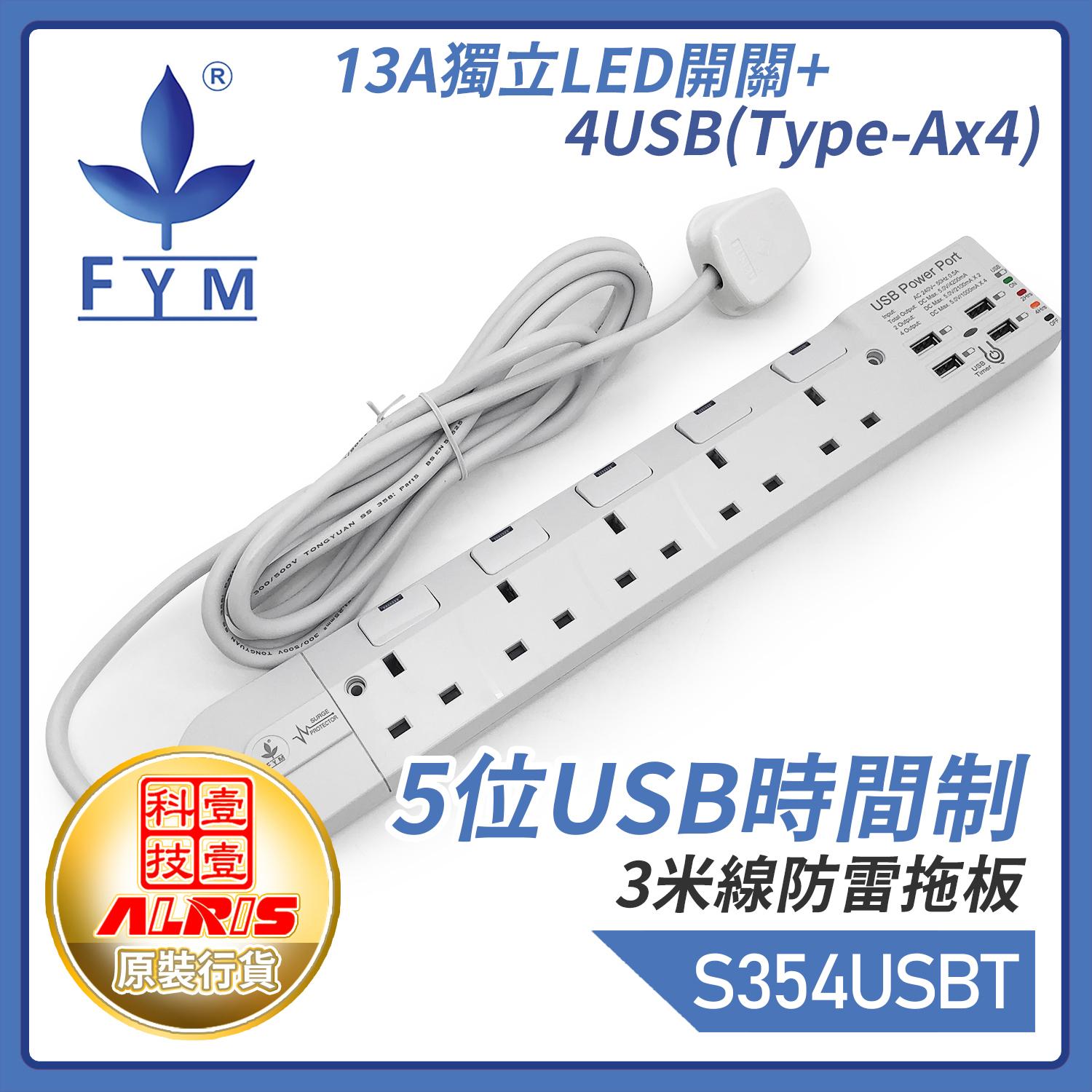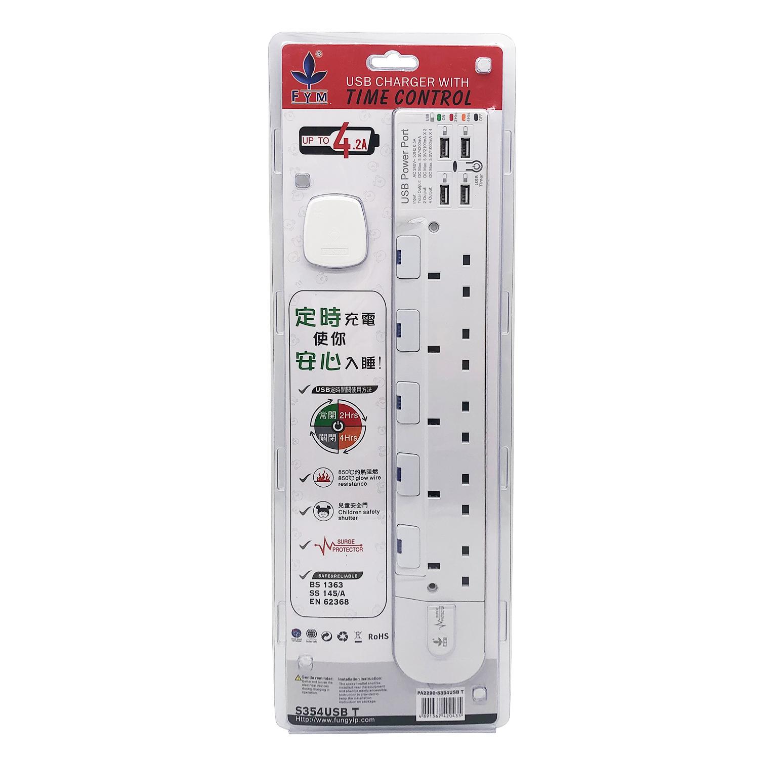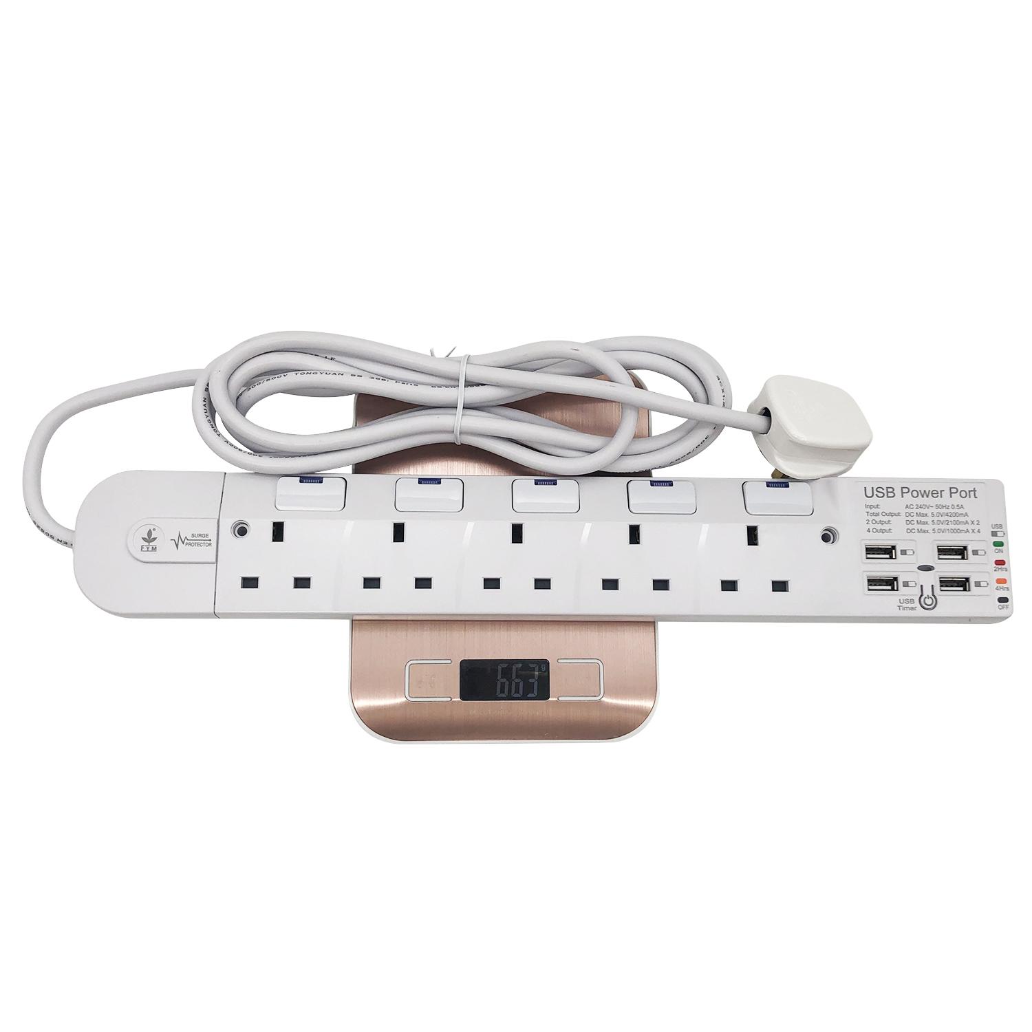 5位13A獨立LED開關+4USB(Type-Ax4)USB時間制3米線防雷拖板