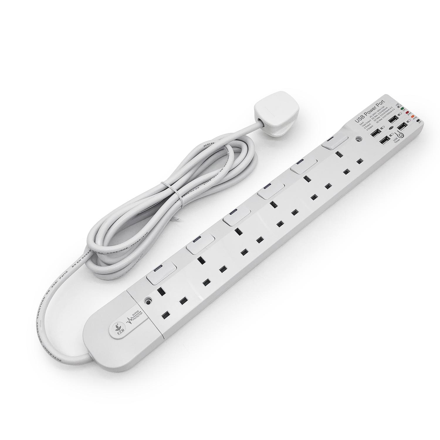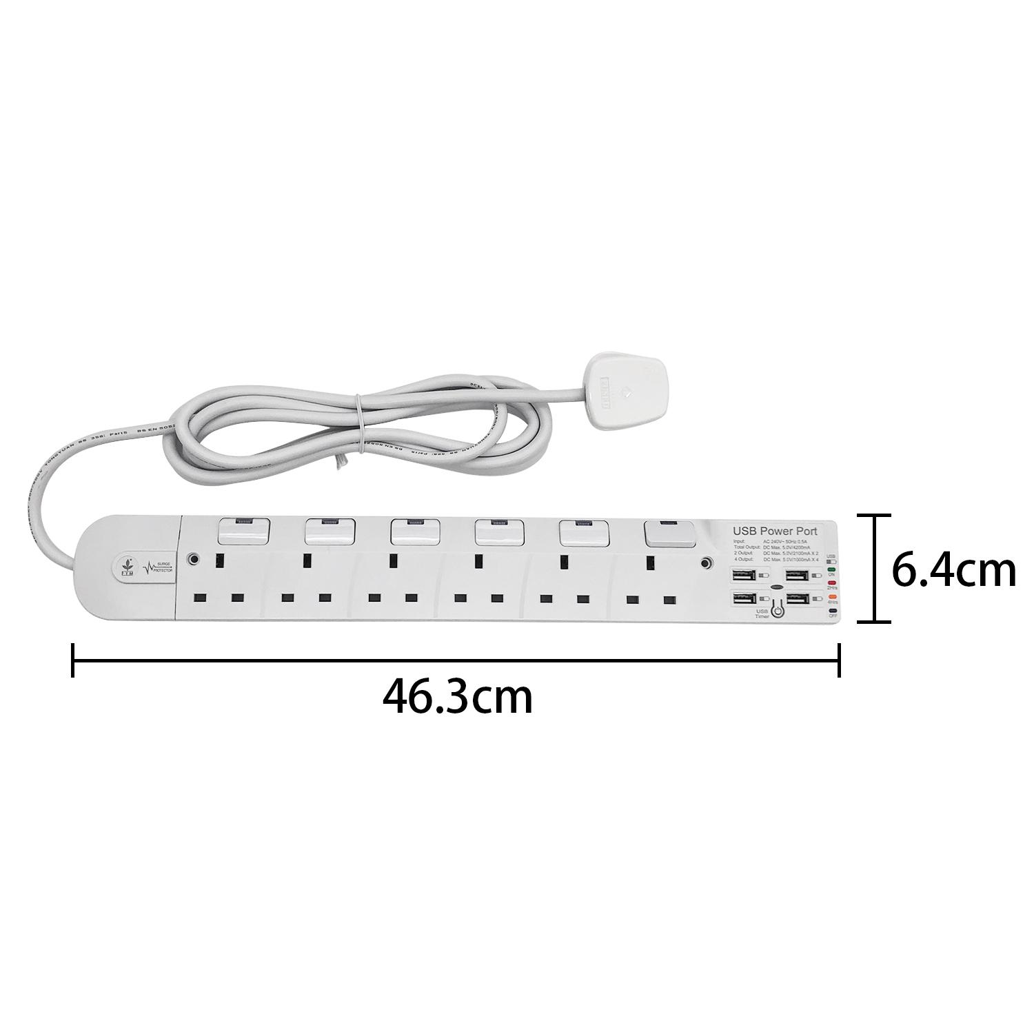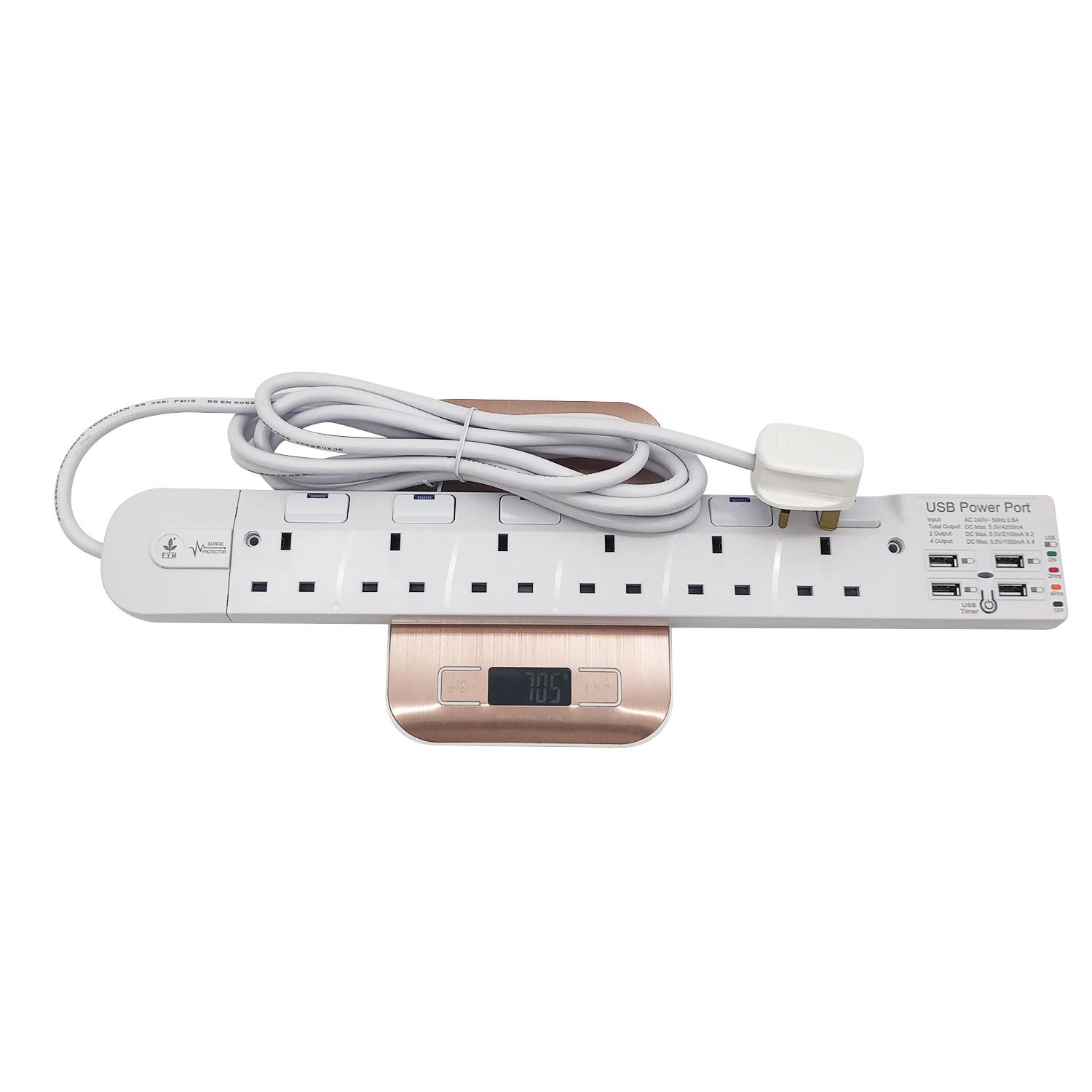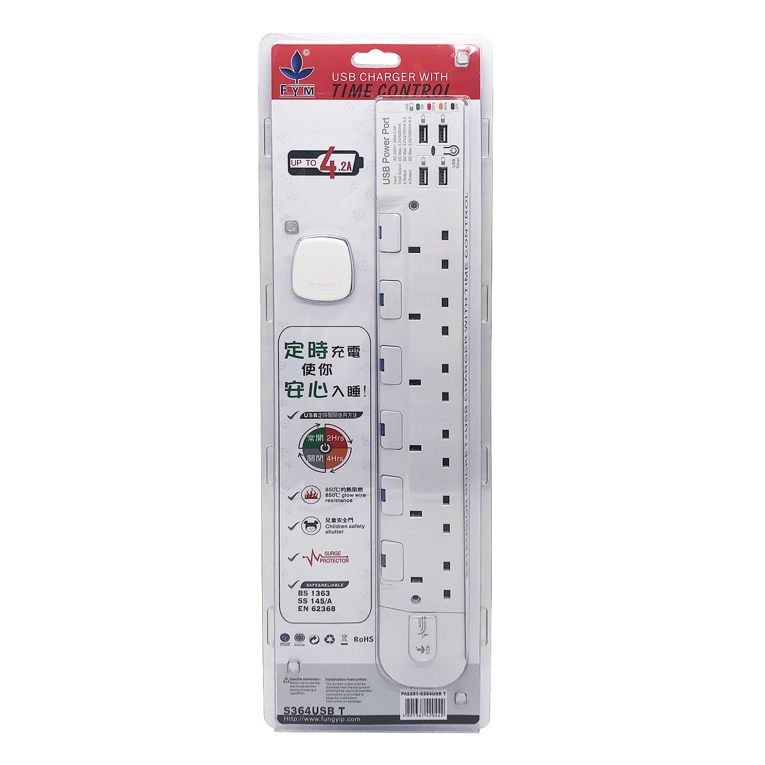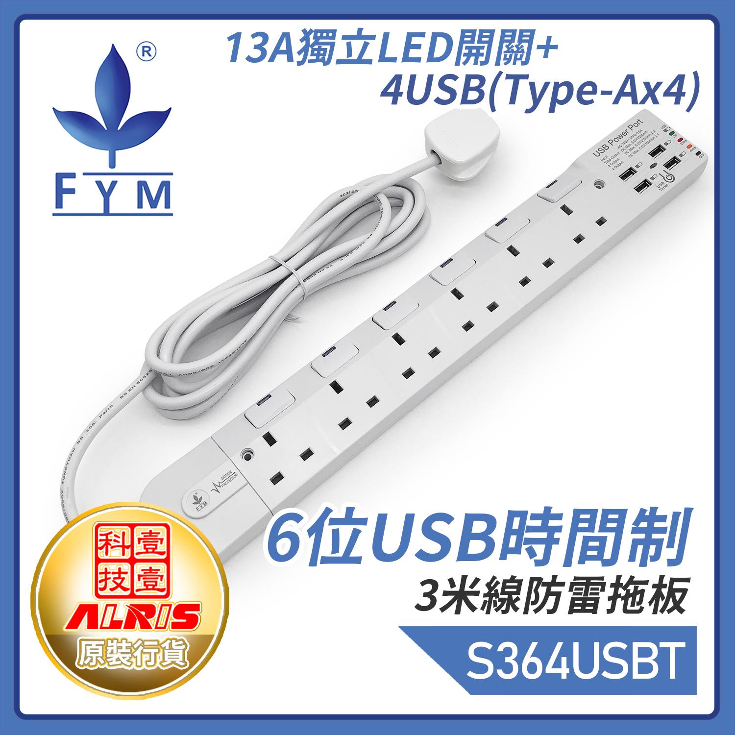 6位13A獨立LED開關+4USB(Type-Ax4)USB時間制3米線防雷拖板