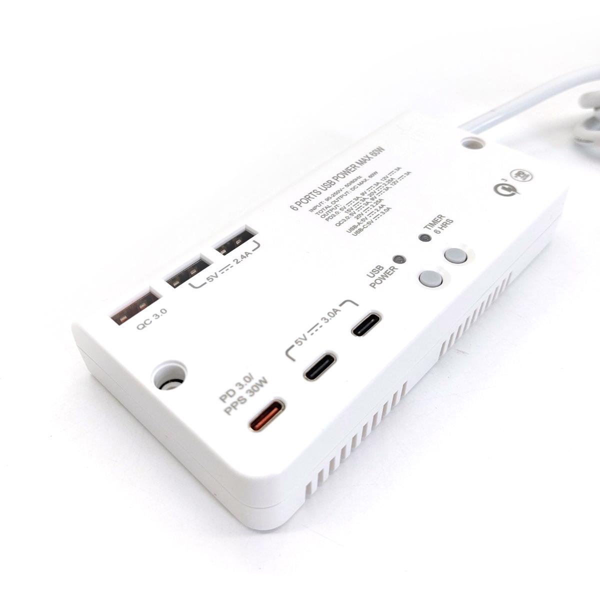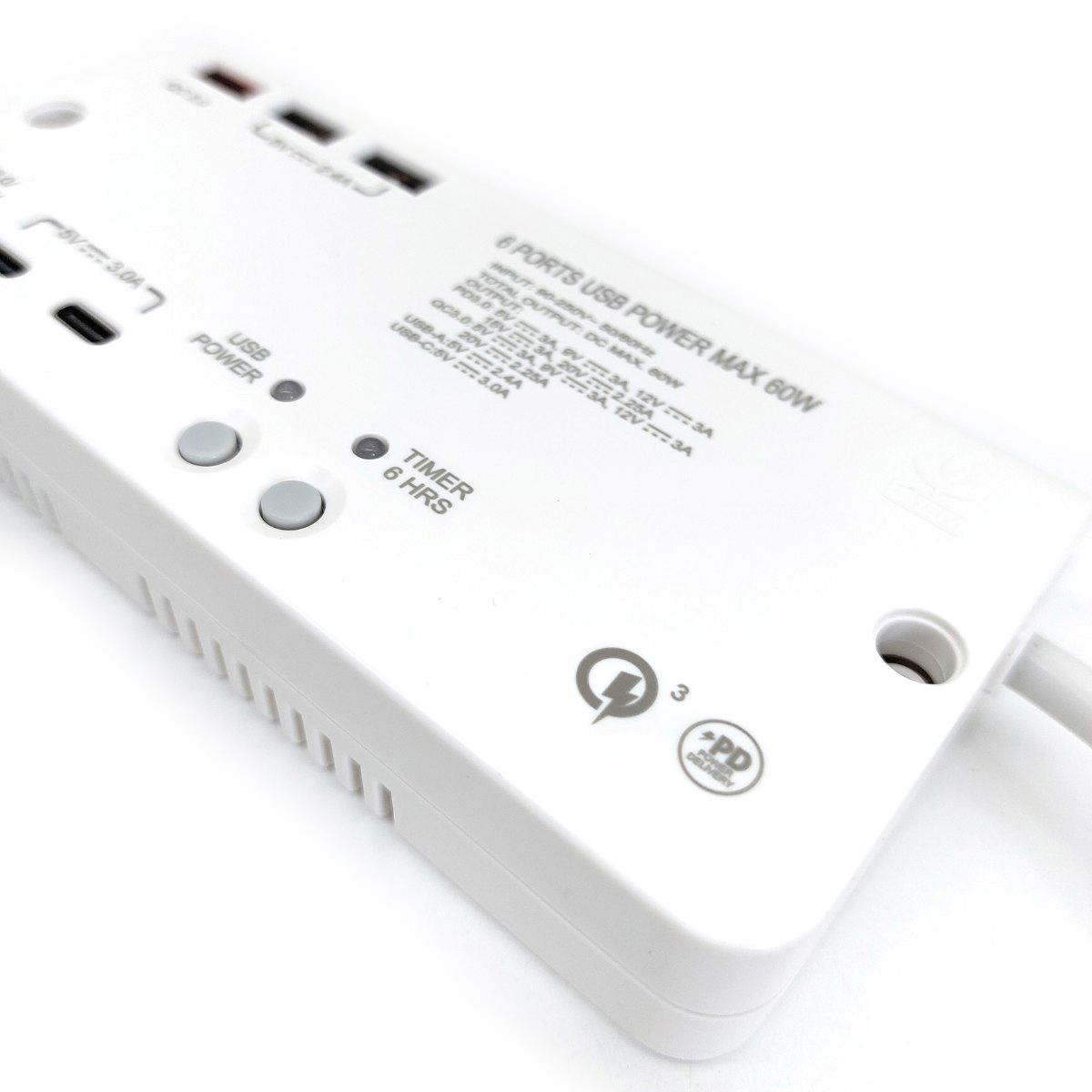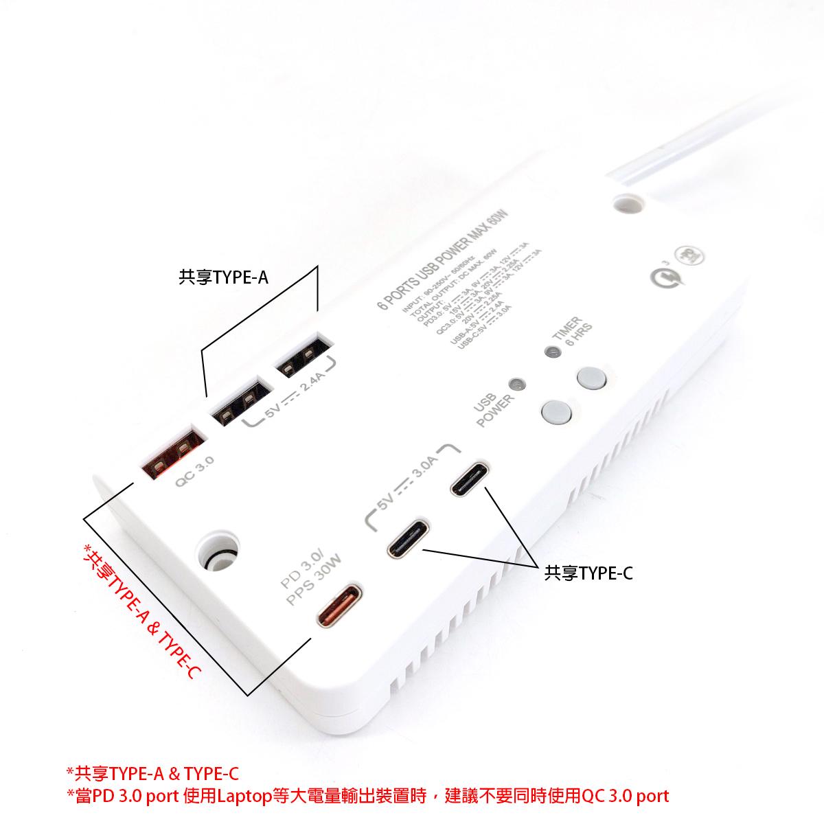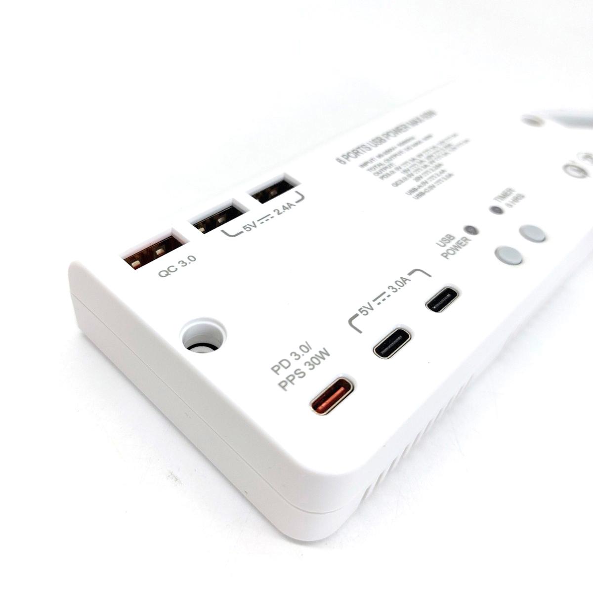 6USB(PD3.0x1+QC3.0X1+Type-Ax2+Type-Cx2)1米線極速快充拖板 (S606USB)