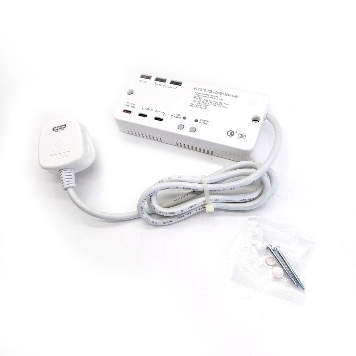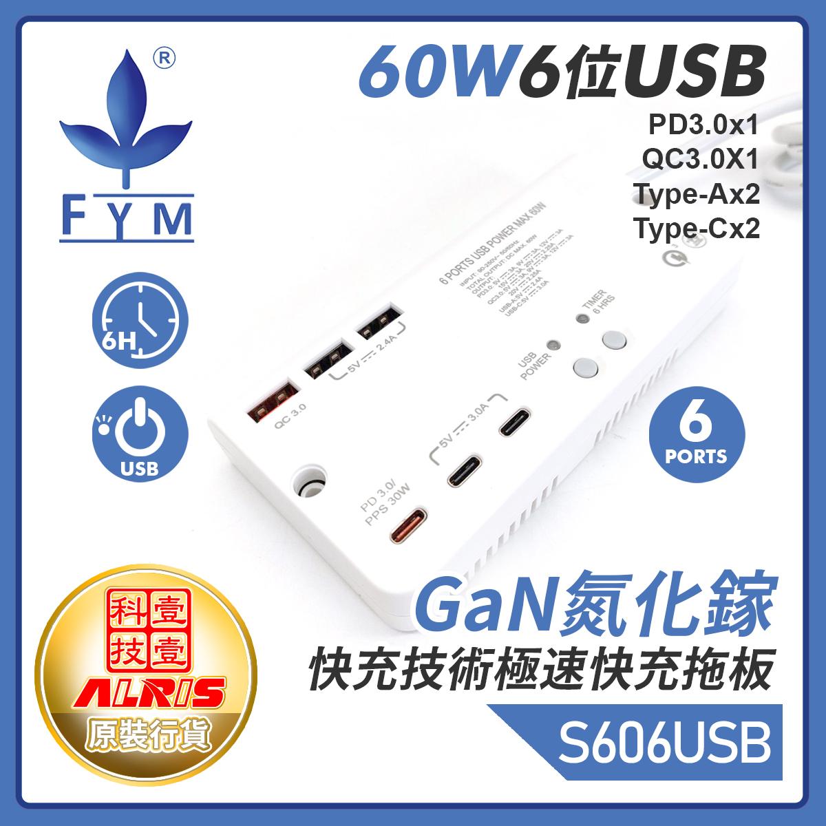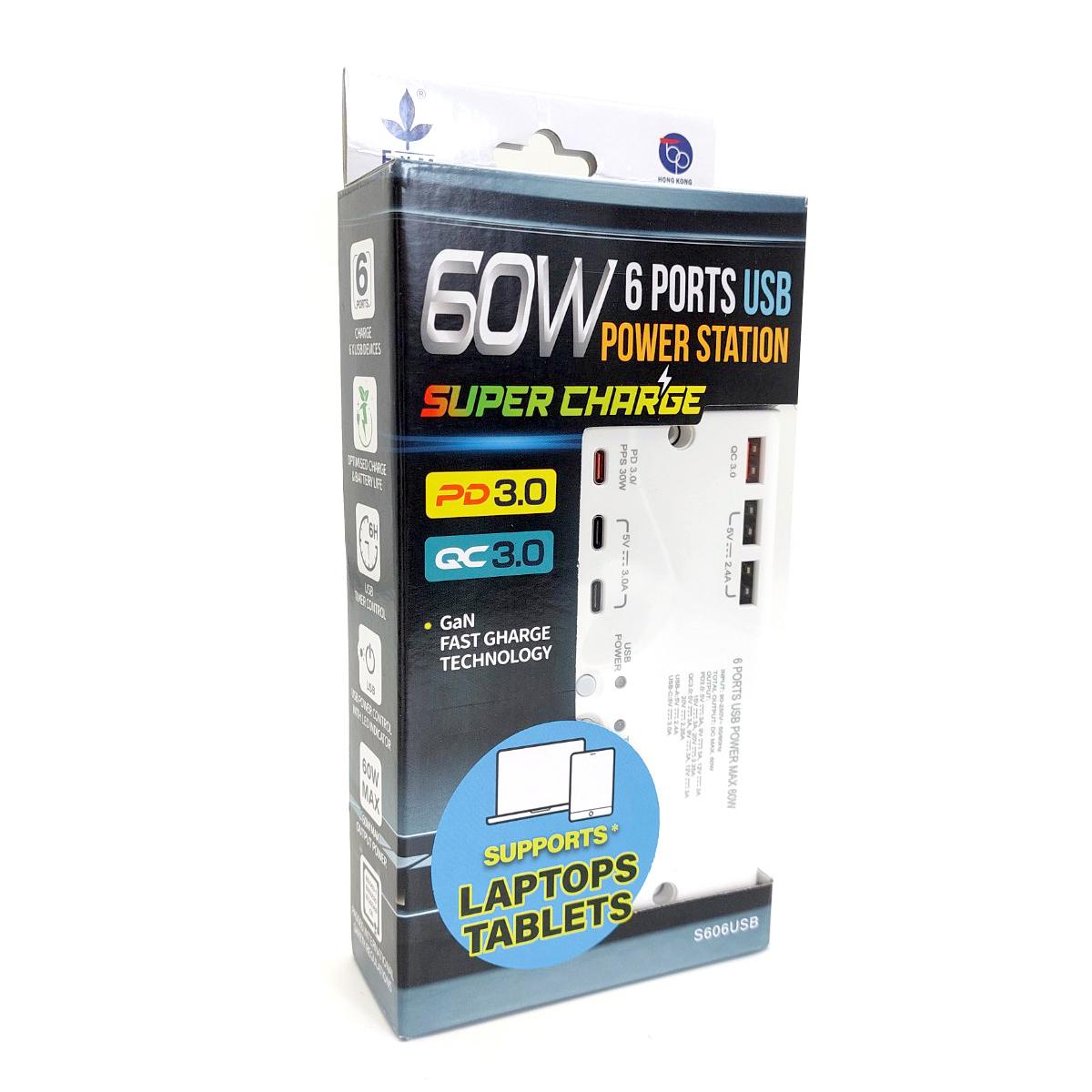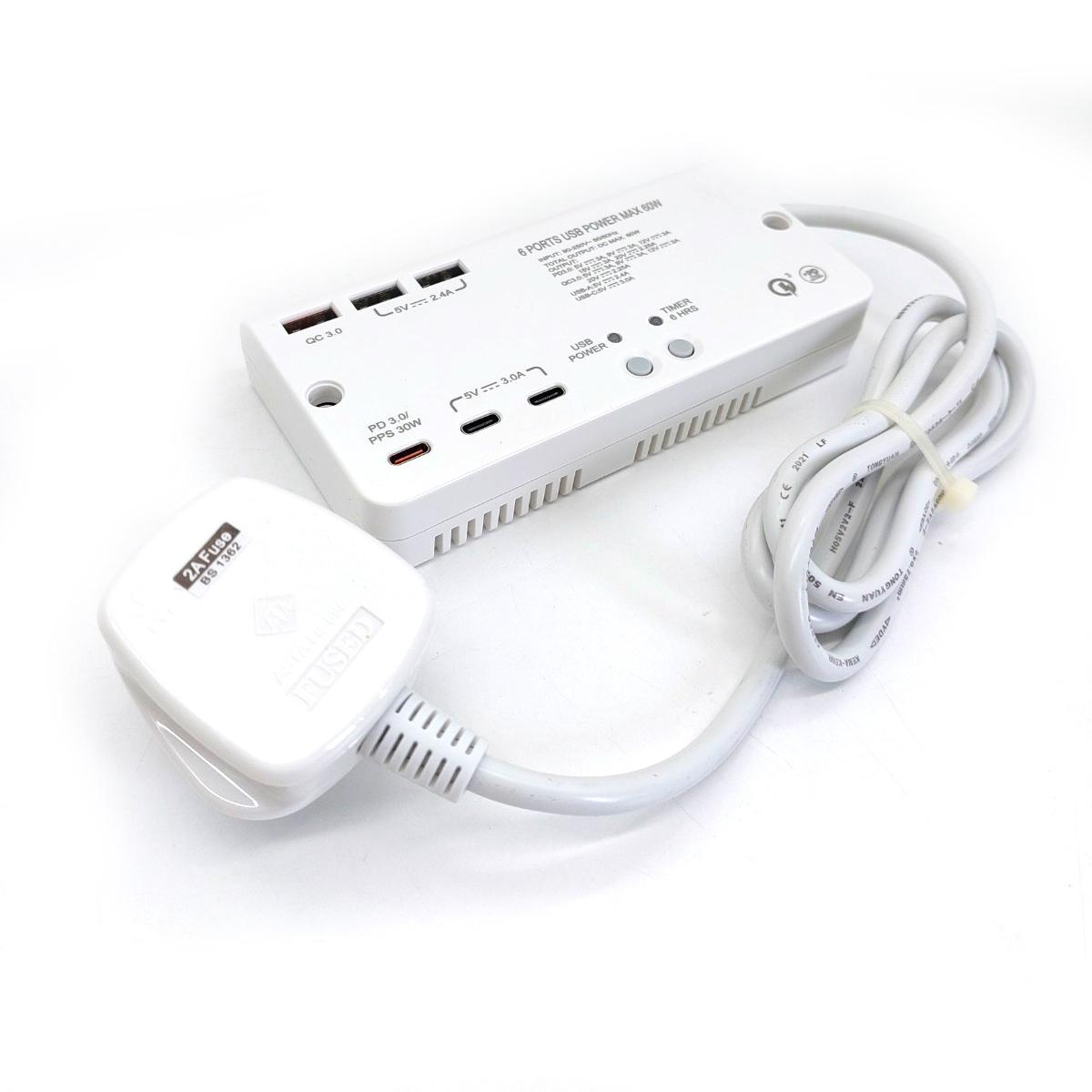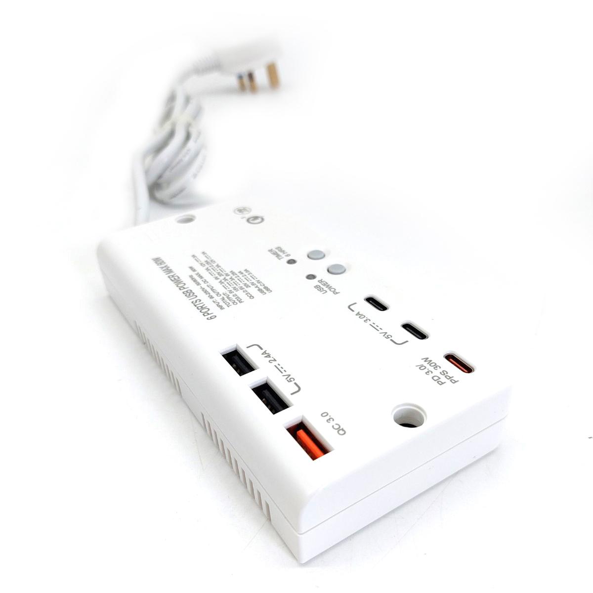 6USB(PD3.0x1+QC3.0X1+Type-Ax2+Type-Cx2)1米線極速快充拖板 (S606USB)