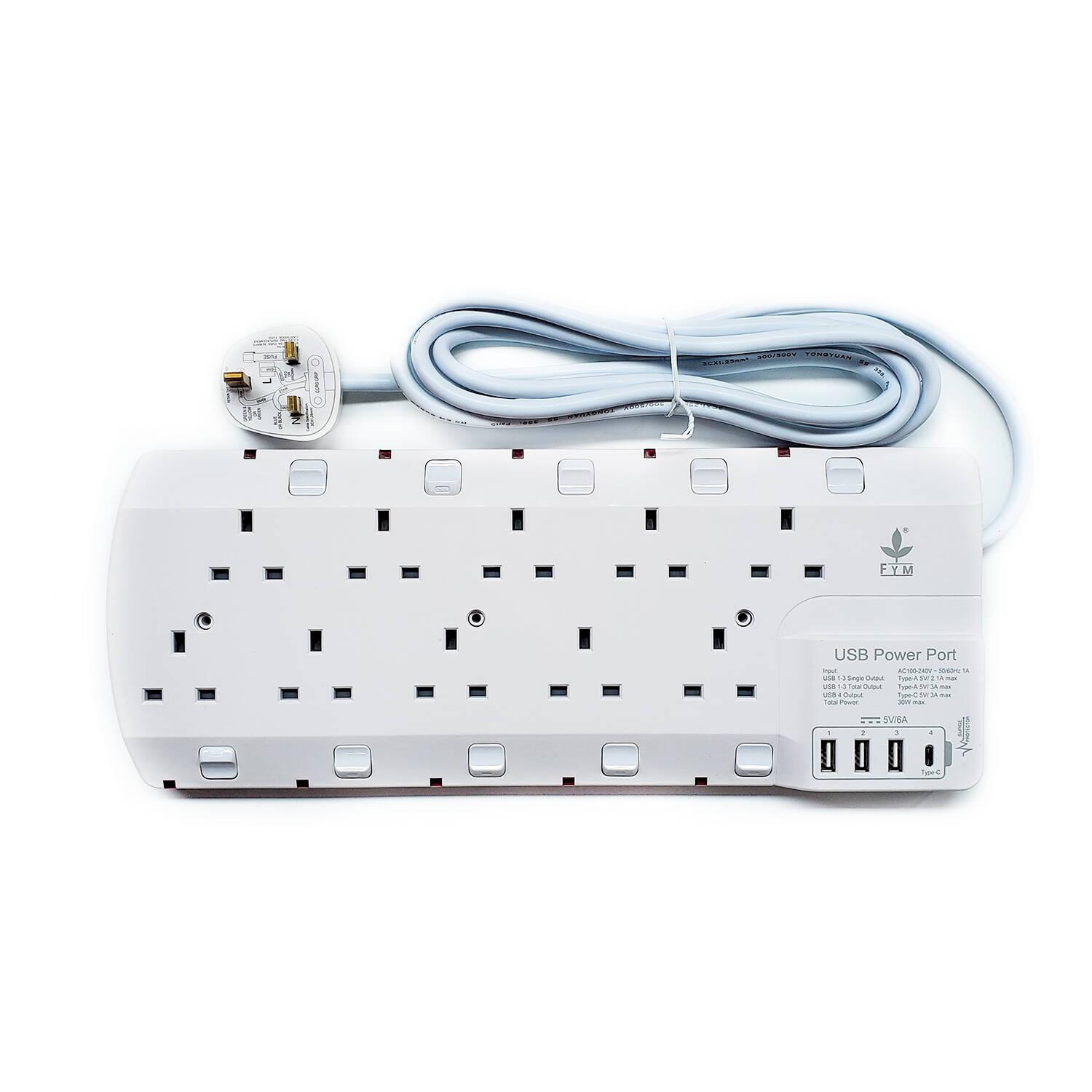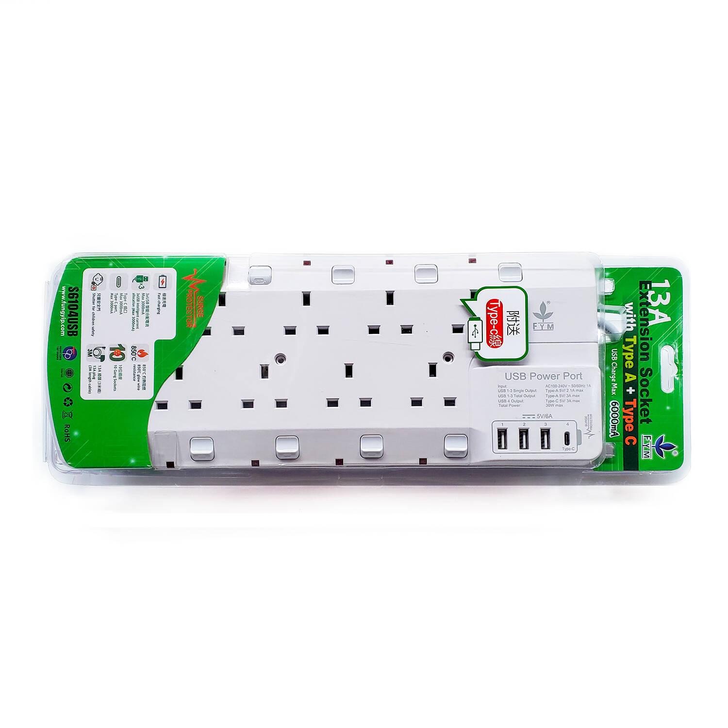 豊葉(豐葉)USB Type-C系列電源拖板(延長線排插排蘇),可讓您將2個至10個物品安全地插入一條拖板,另外還有4個USB插座,Type-Ax3+Type-Cx1的3米線防雷拖板,可為手機,平板電腦和其他USB設備供電。 該產品提供3米長的電纜,和帶防雷功能可保護寶貴的電氣設備免受脈衝的影響,並受到保護。