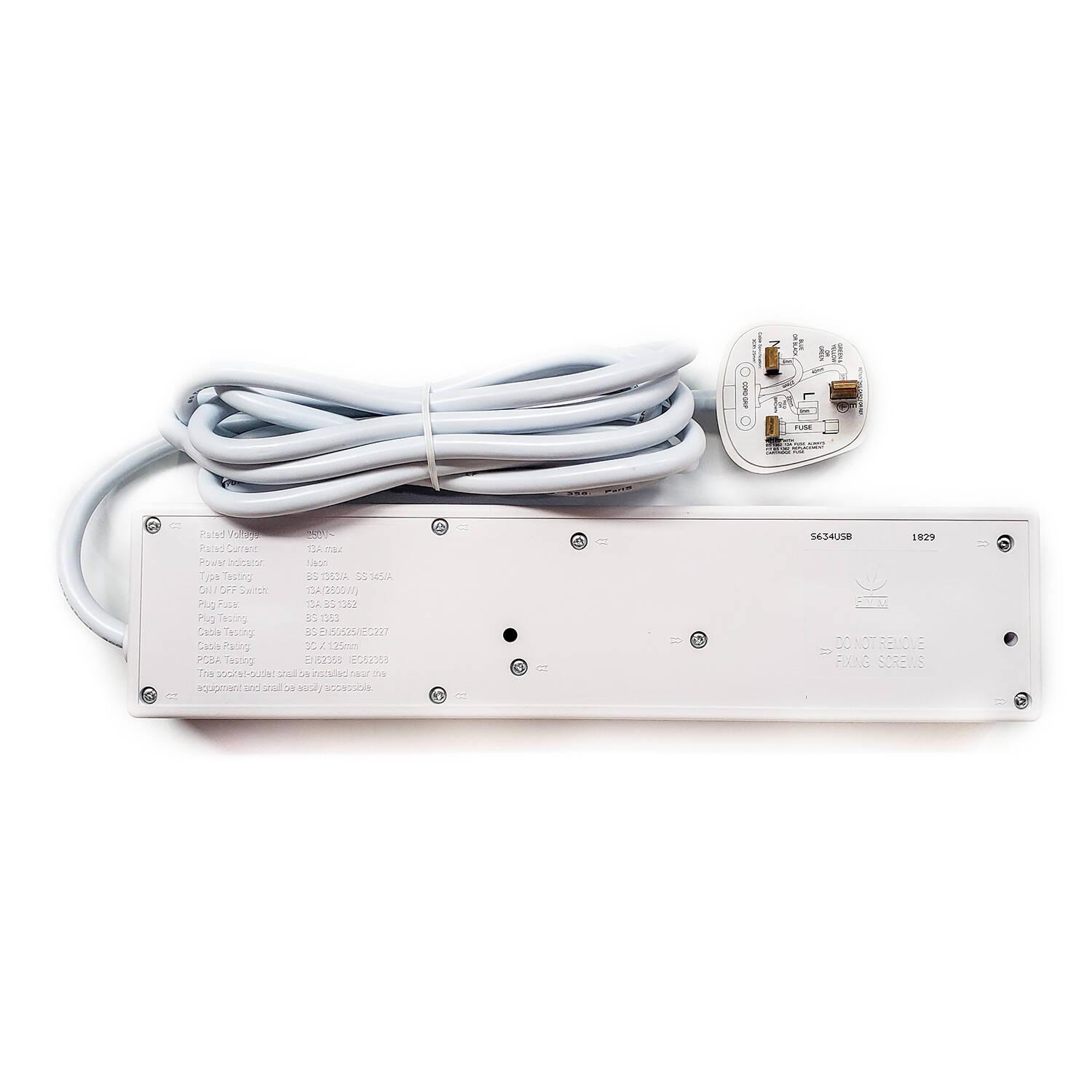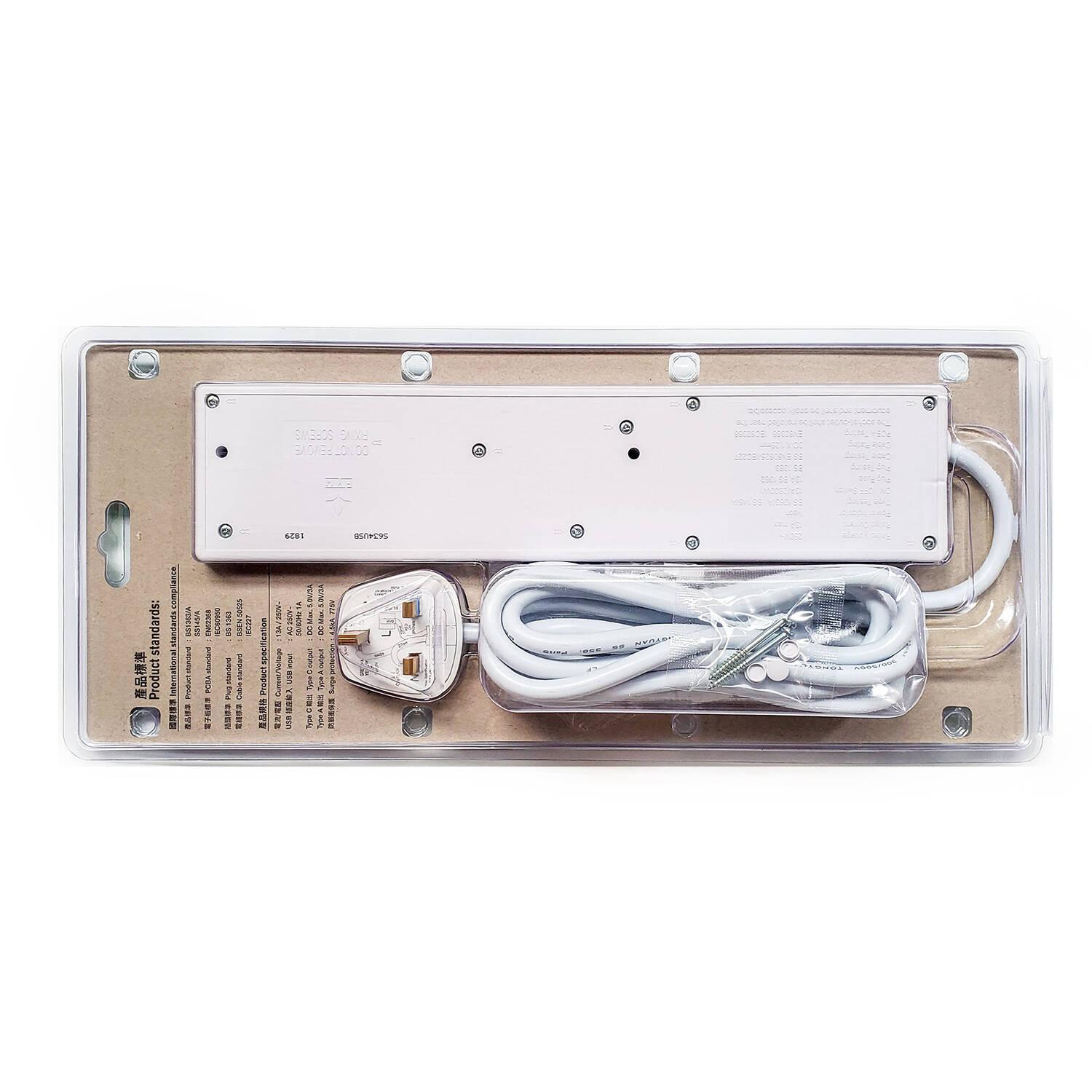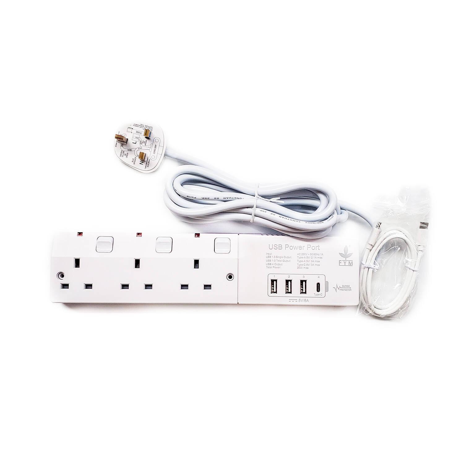 白色3位13A獨立LED開關+4USB(Type-Ax3+Type-Cx1)3米線防雷拖板