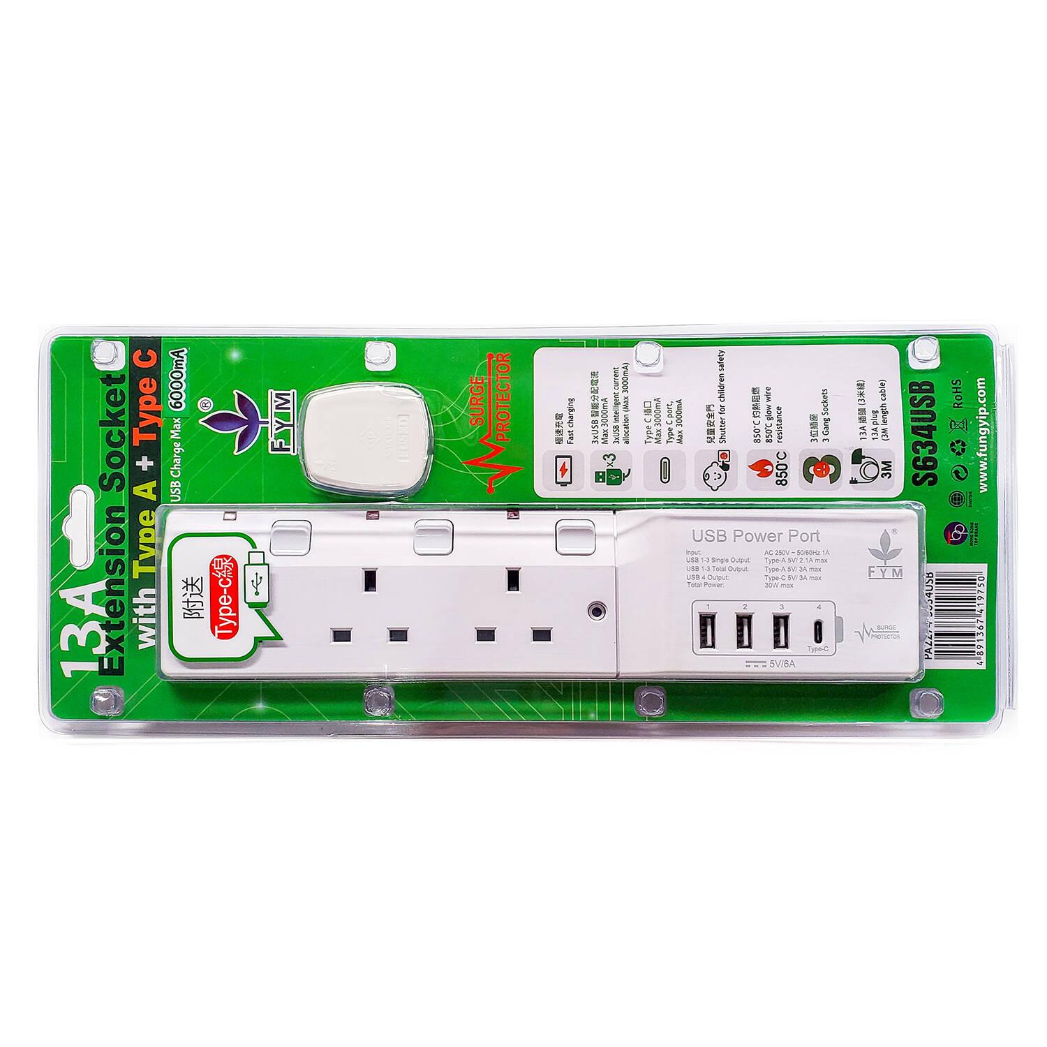 豊葉(豐葉)USB Type-C系列電源拖板(延長線排插排蘇),可讓您將2個至10個物品安全地插入一條拖板,另外還有4個USB插座,Type-Ax3+Type-Cx1的3米線防雷拖板,可為手機,平板電腦和其他USB設備供電。 該產品提供3米長的電纜,和帶防雷功能可保護寶貴的電氣設備免受脈衝的影響,並受到保護。