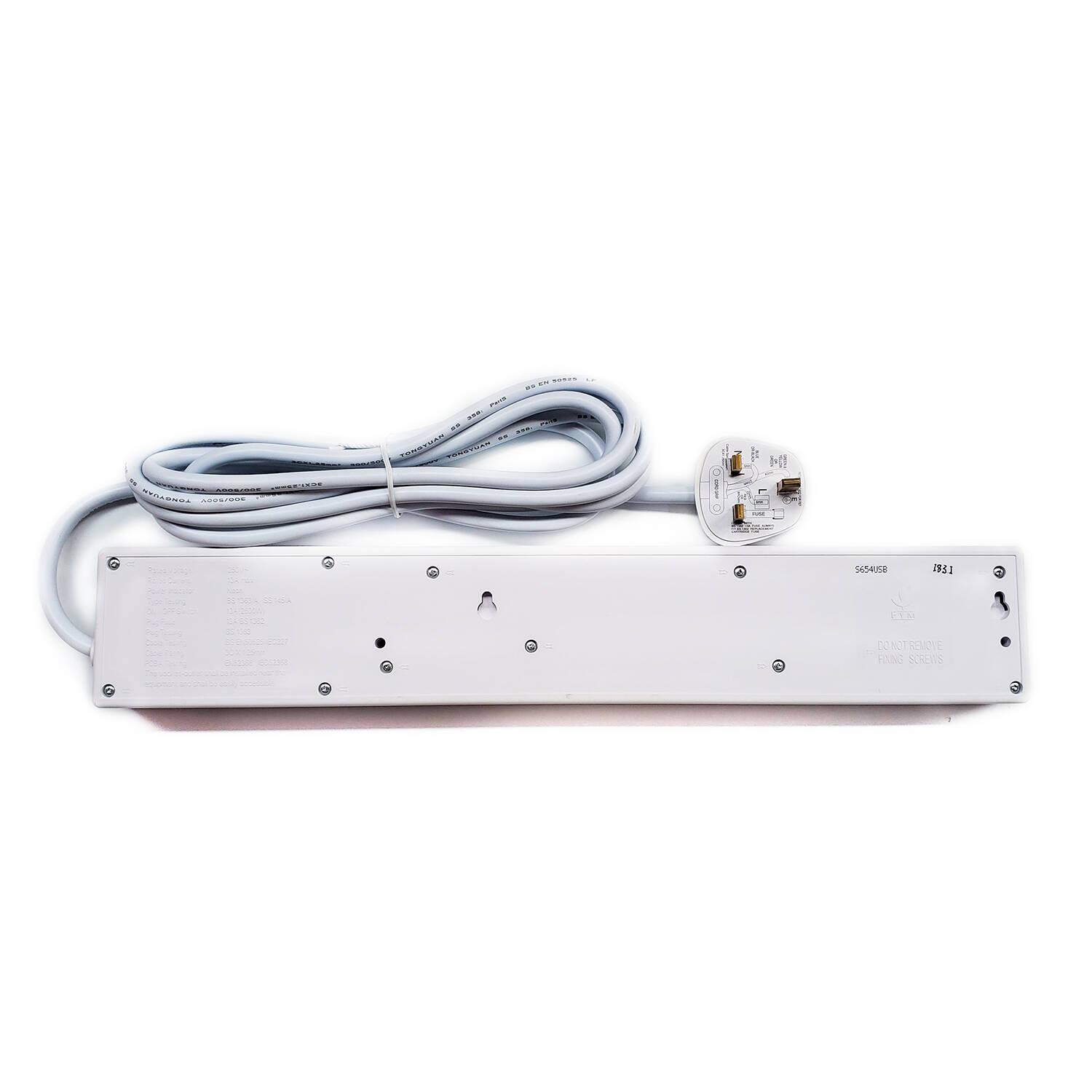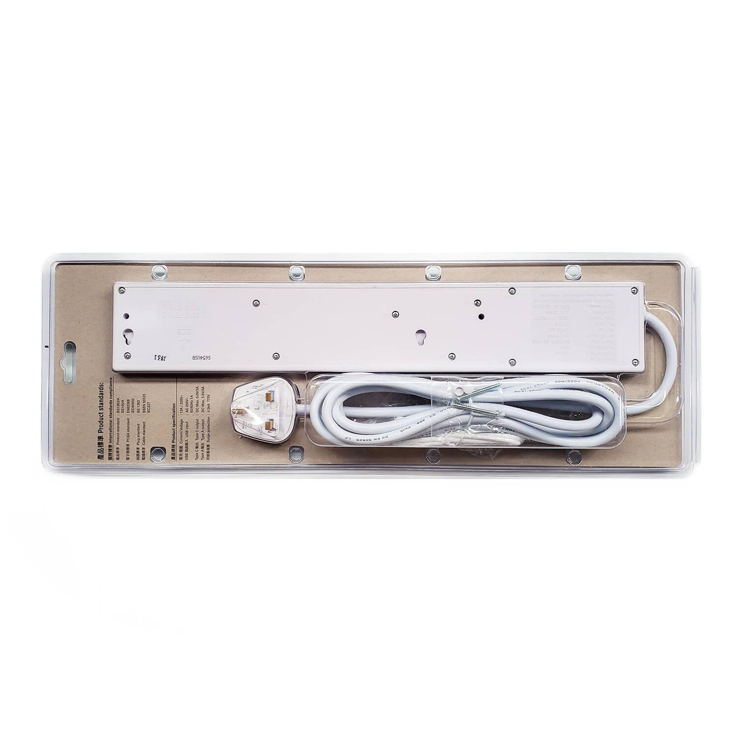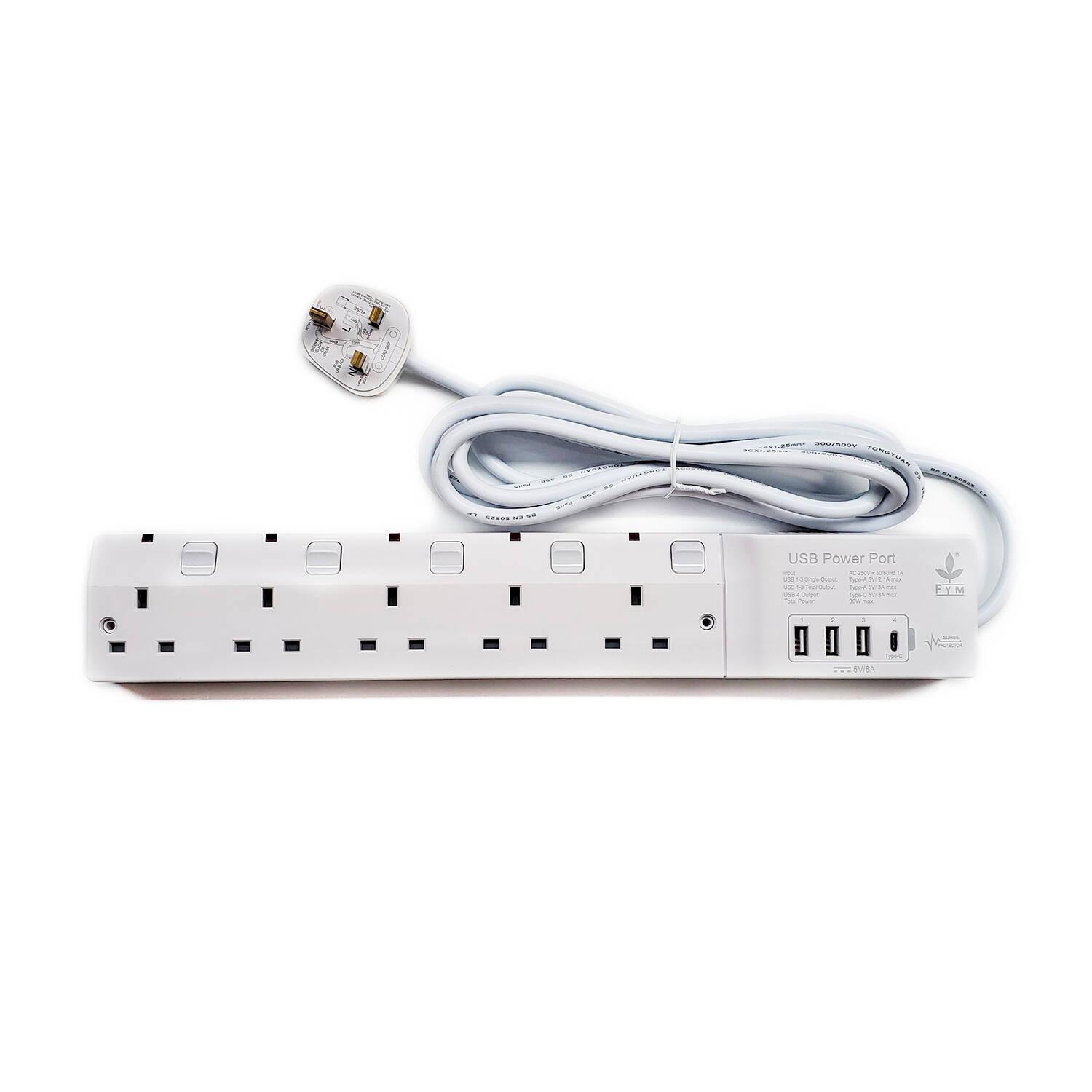 白色5位13A獨立LED開關+4USB(Type-Ax3+Type-Cx1)3米線防雷拖板