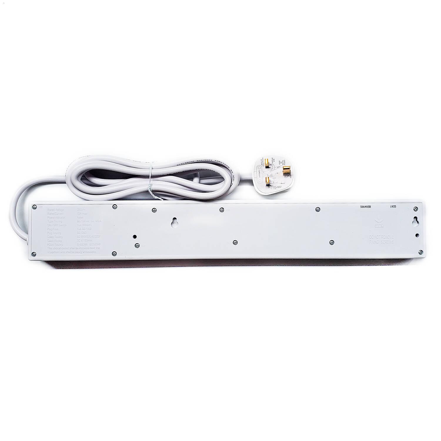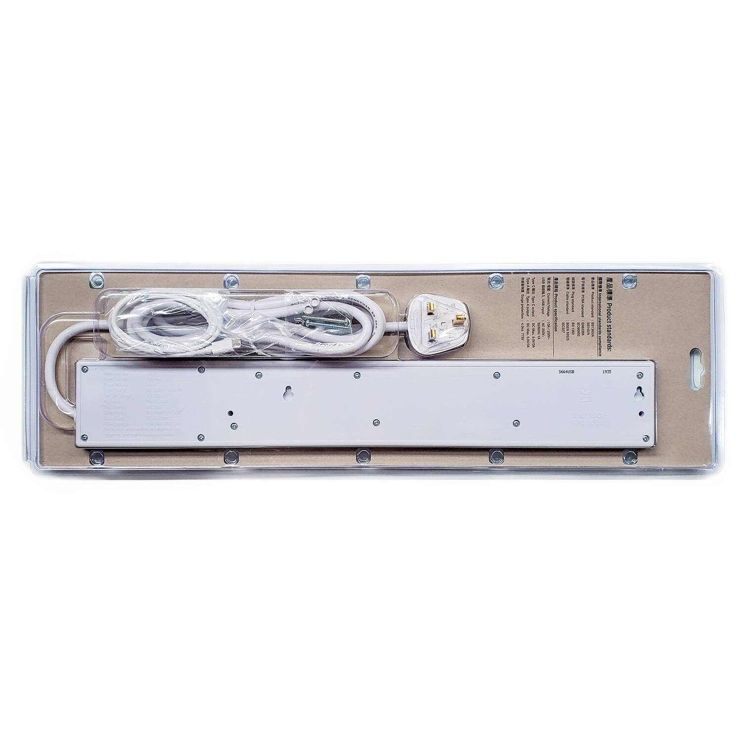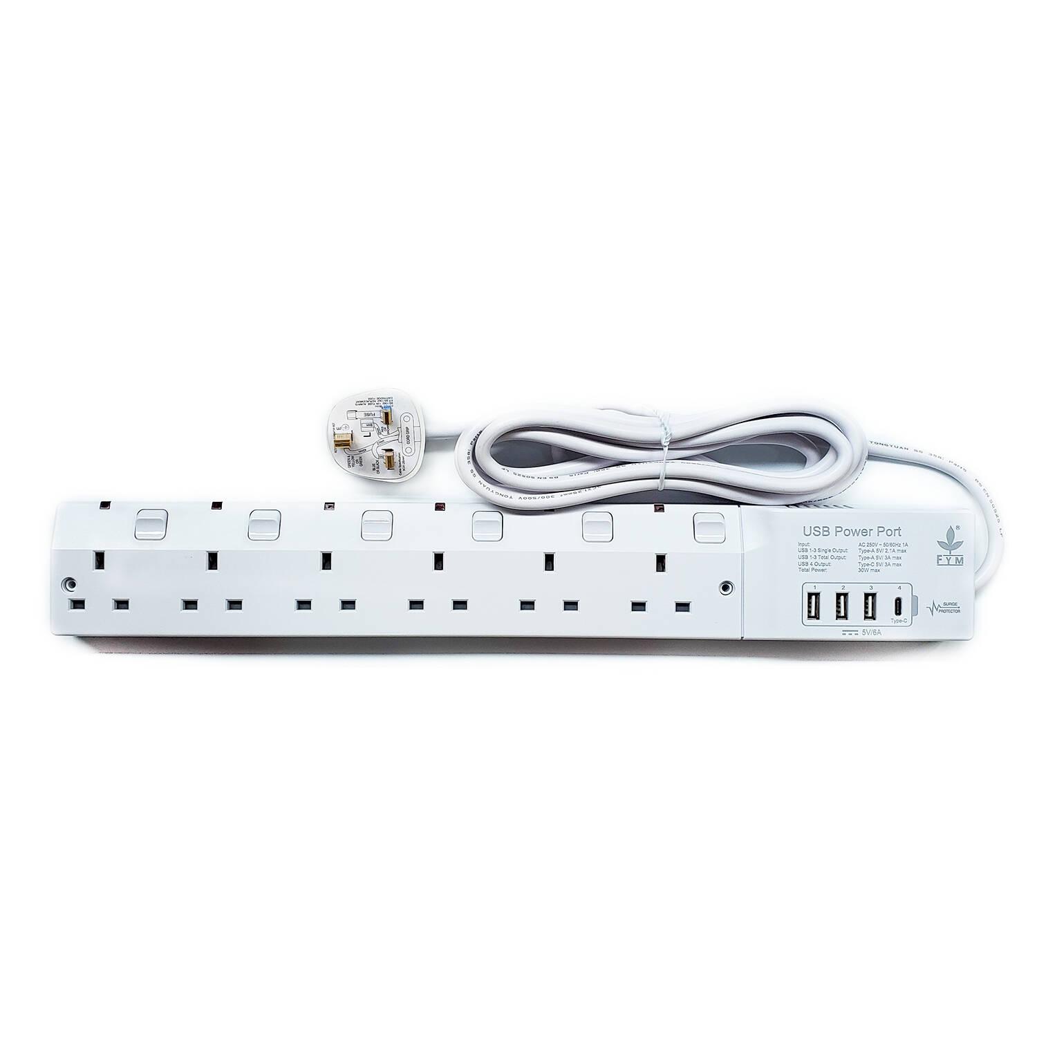白色6位13A獨立LED開關+4USB(Type-Ax3+Type-Cx1)3米線防雷拖板