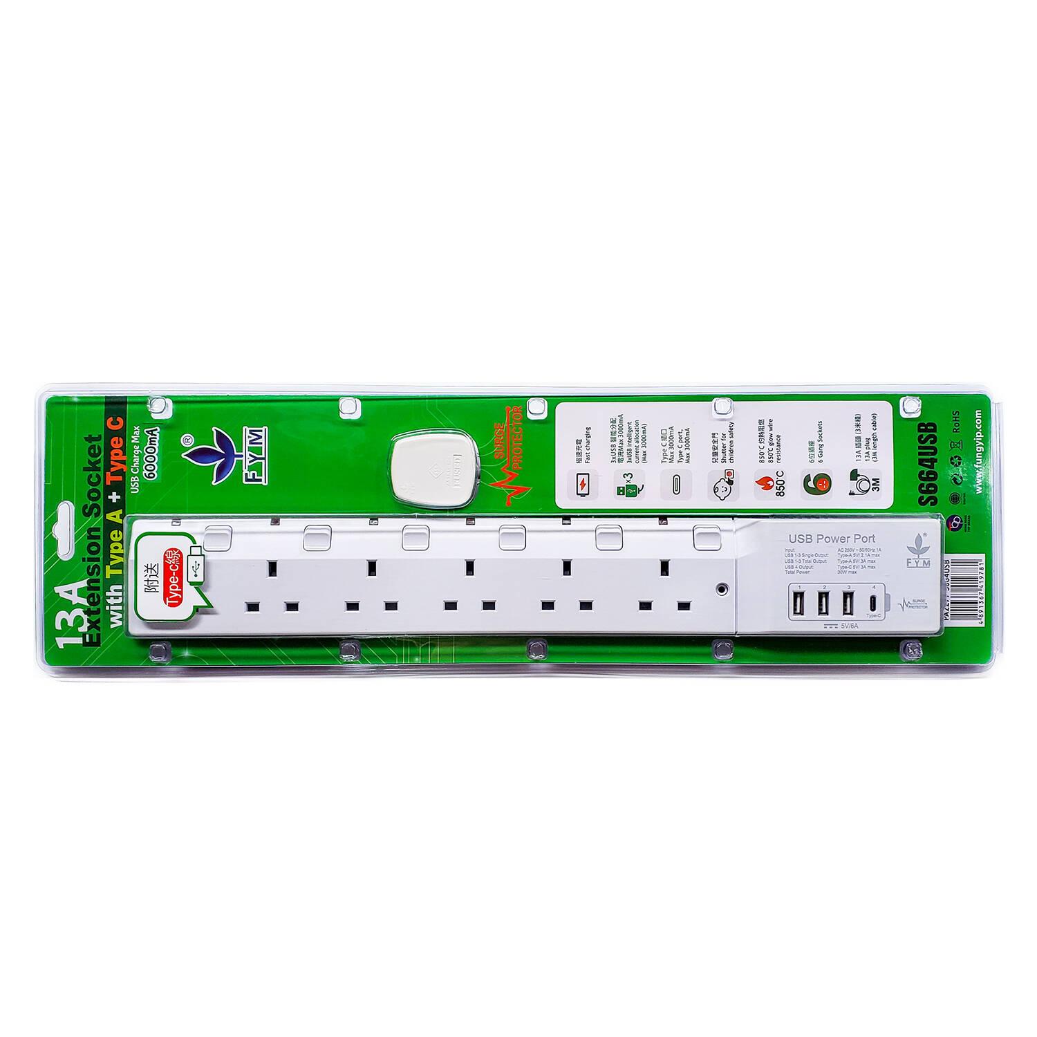 豊葉(豐葉)USB Type-C系列電源拖板(延長線排插排蘇),可讓您將2個至10個物品安全地插入一條拖板,另外還有4個USB插座,Type-Ax3+Type-Cx1的3米線防雷拖板,可為手機,平板電腦和其他USB設備供電。 該產品提供3米長的電纜,和帶防雷功能可保護寶貴的電氣設備免受脈衝的影響,並受到保護。
