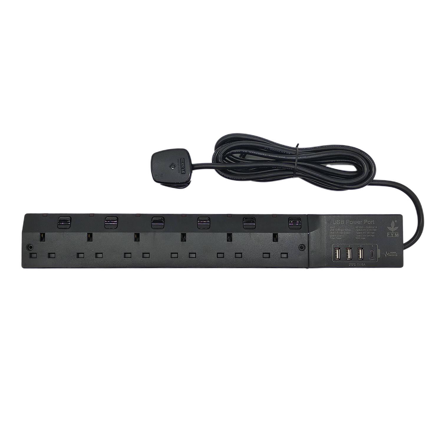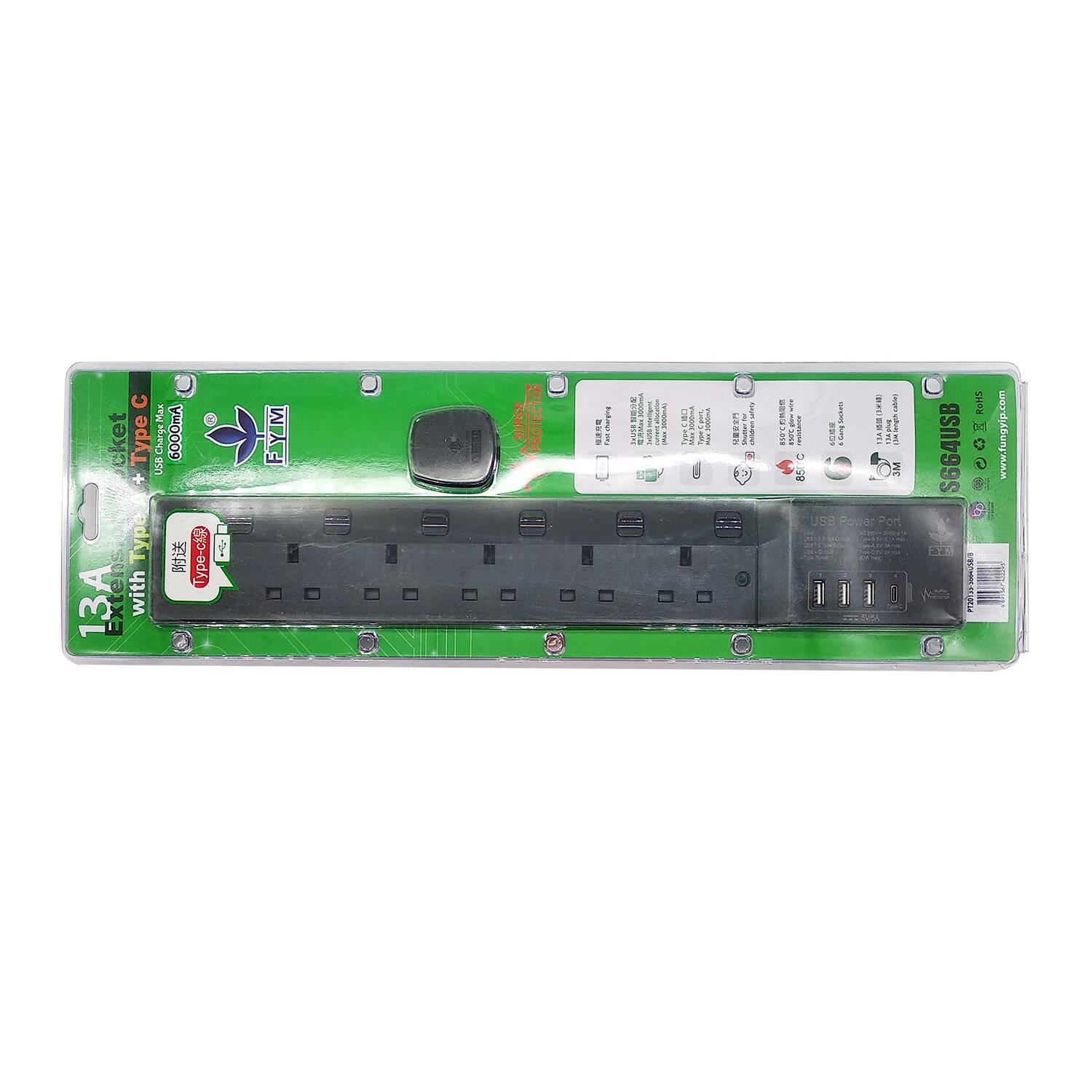 型號:S664USB 黑色6位13A獨立LED開關+4USB(Type-Ax3+Type-Cx1)3米線防雷拖板 *內附贈送USB Type-C快充電源線1條 【產品特點和規格】 1. 內置USB極速快充智能芯片 |