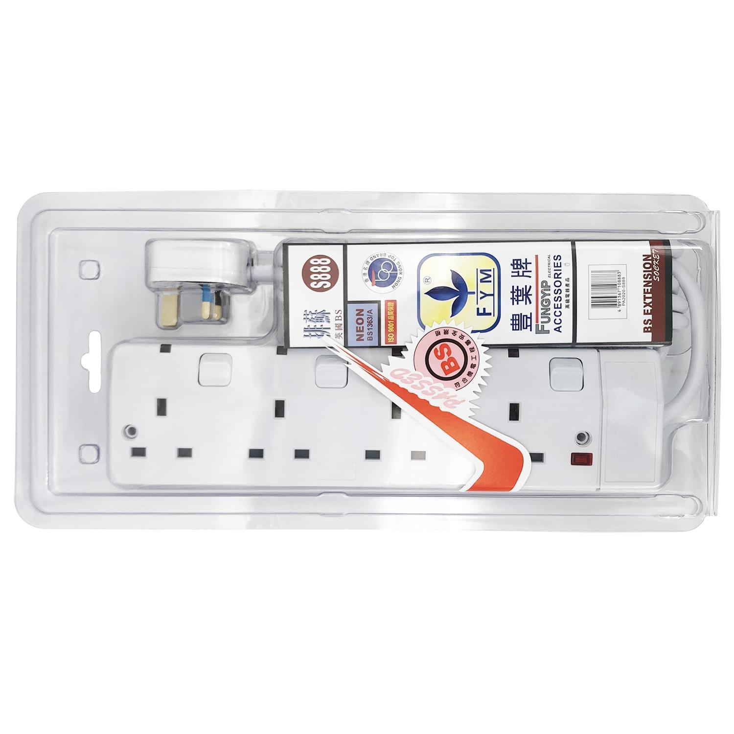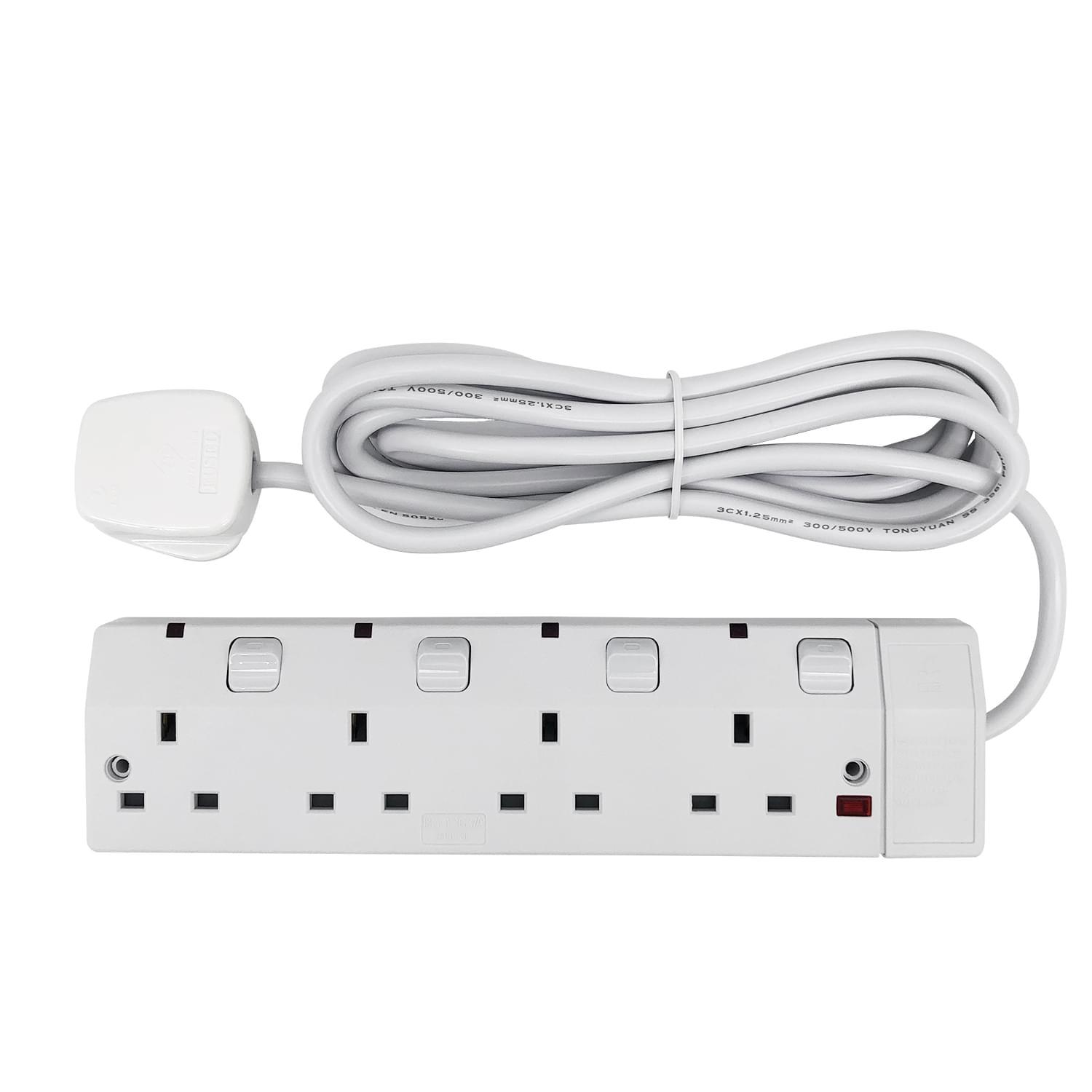 白色4位13A獨立開關掣及指示燈3米線拖板