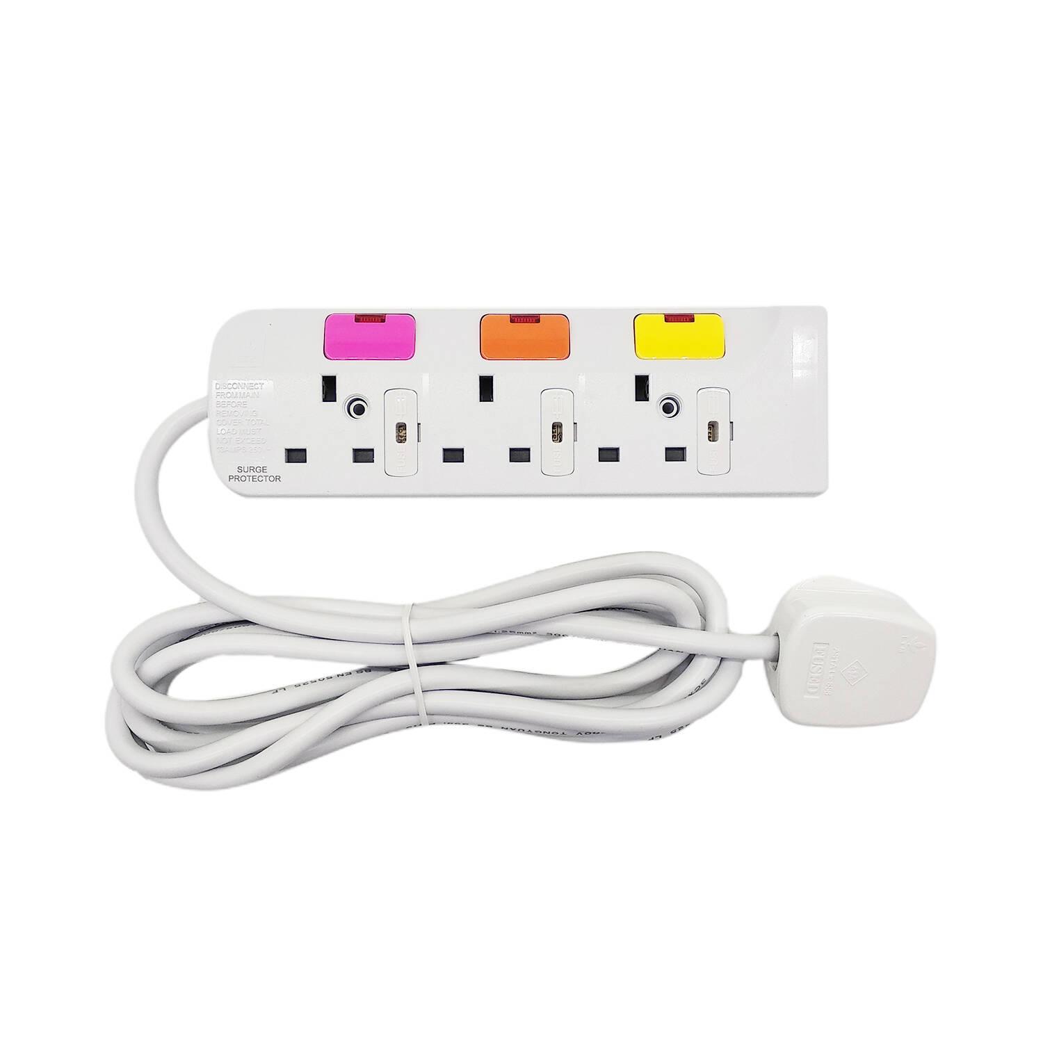 3位13A獨立保險絲+有燈大開關3米線拖板