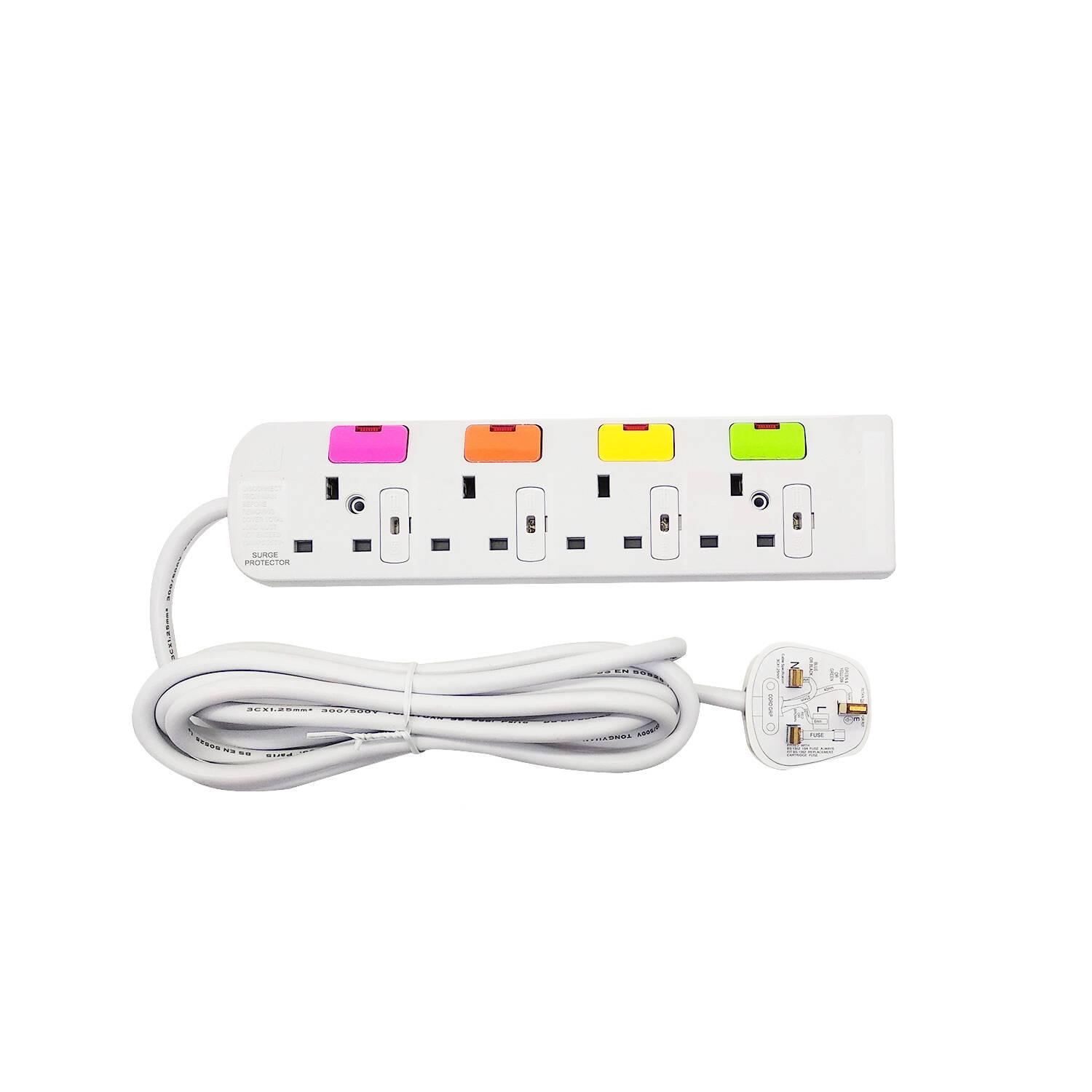 4位13A獨立保險絲+有燈大開關3米線拖板