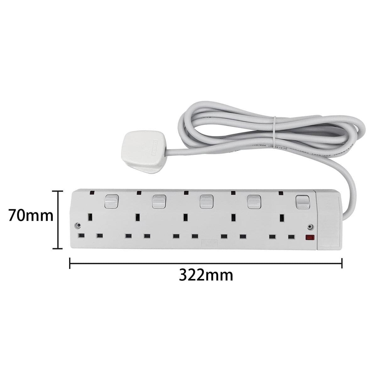 5位13A獨立開關掣及指示燈3米線拖板