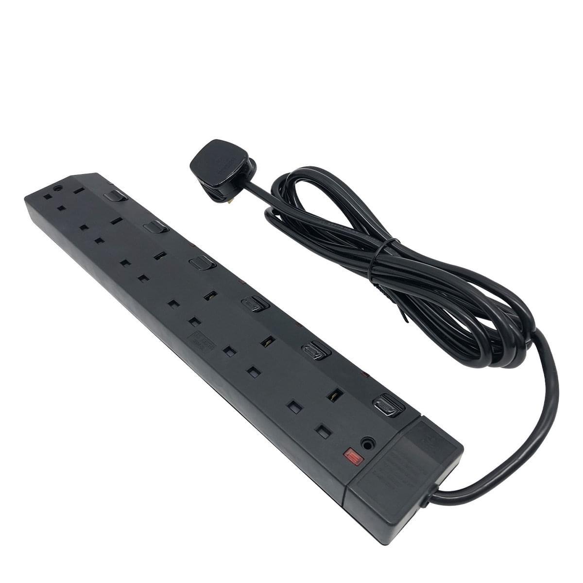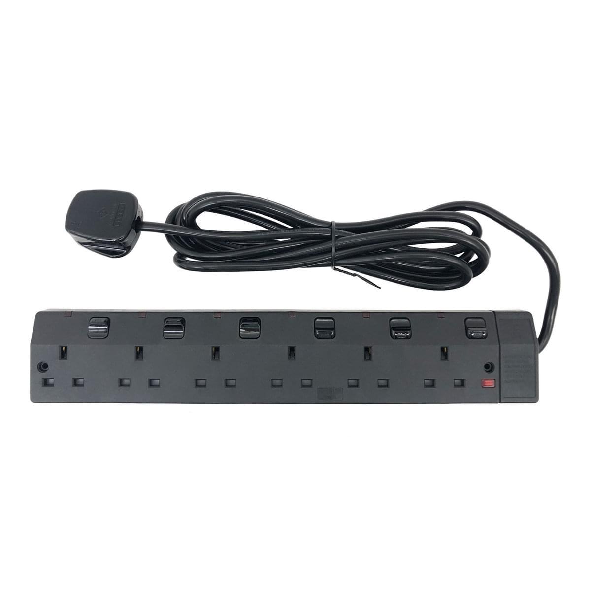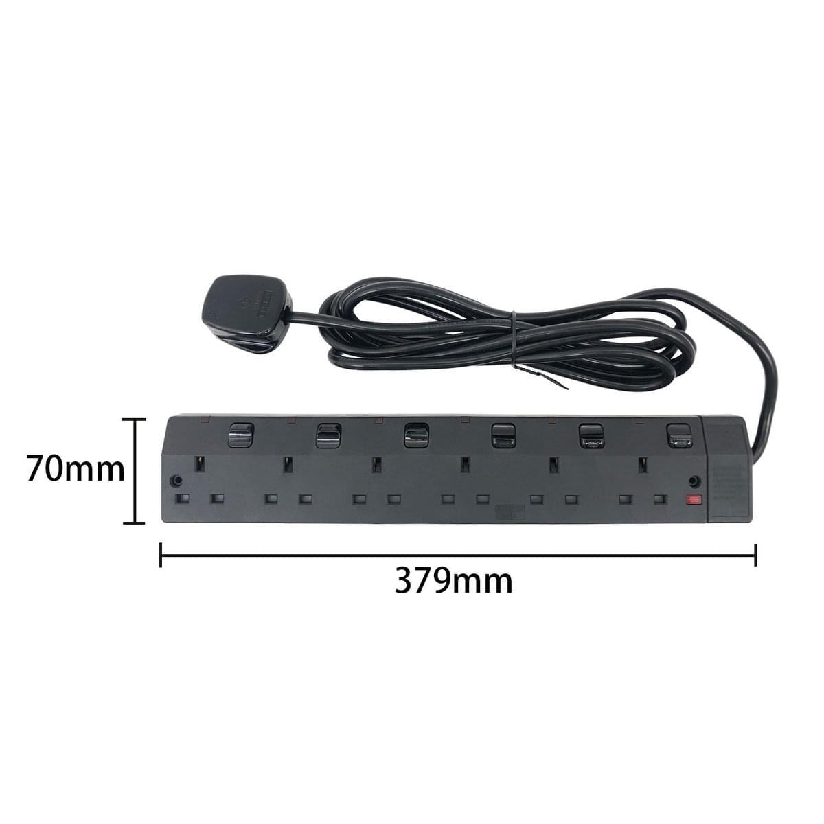黑色6位13A獨立開關掣及指示燈3米線拖板