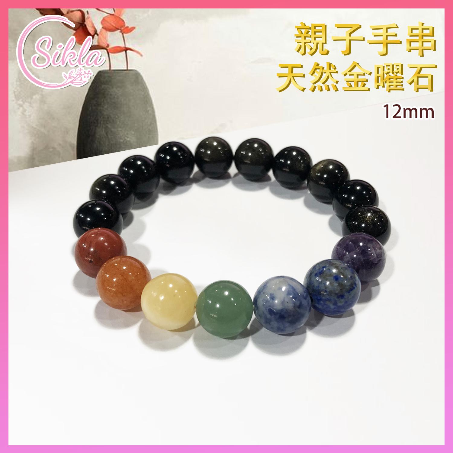 名稱 : 天然7脈輪配金曜石手鍊(SL-BL-12MM-7GB)