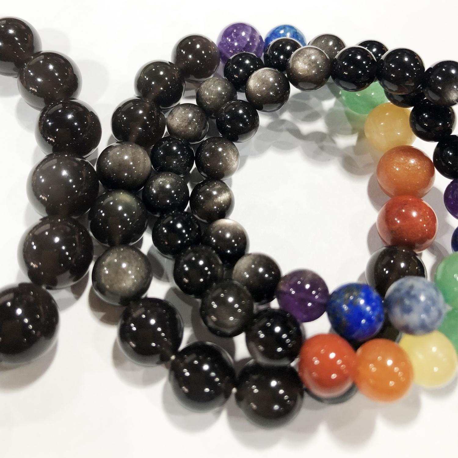 材質 : 七脈輪晶石 / 銀曜石