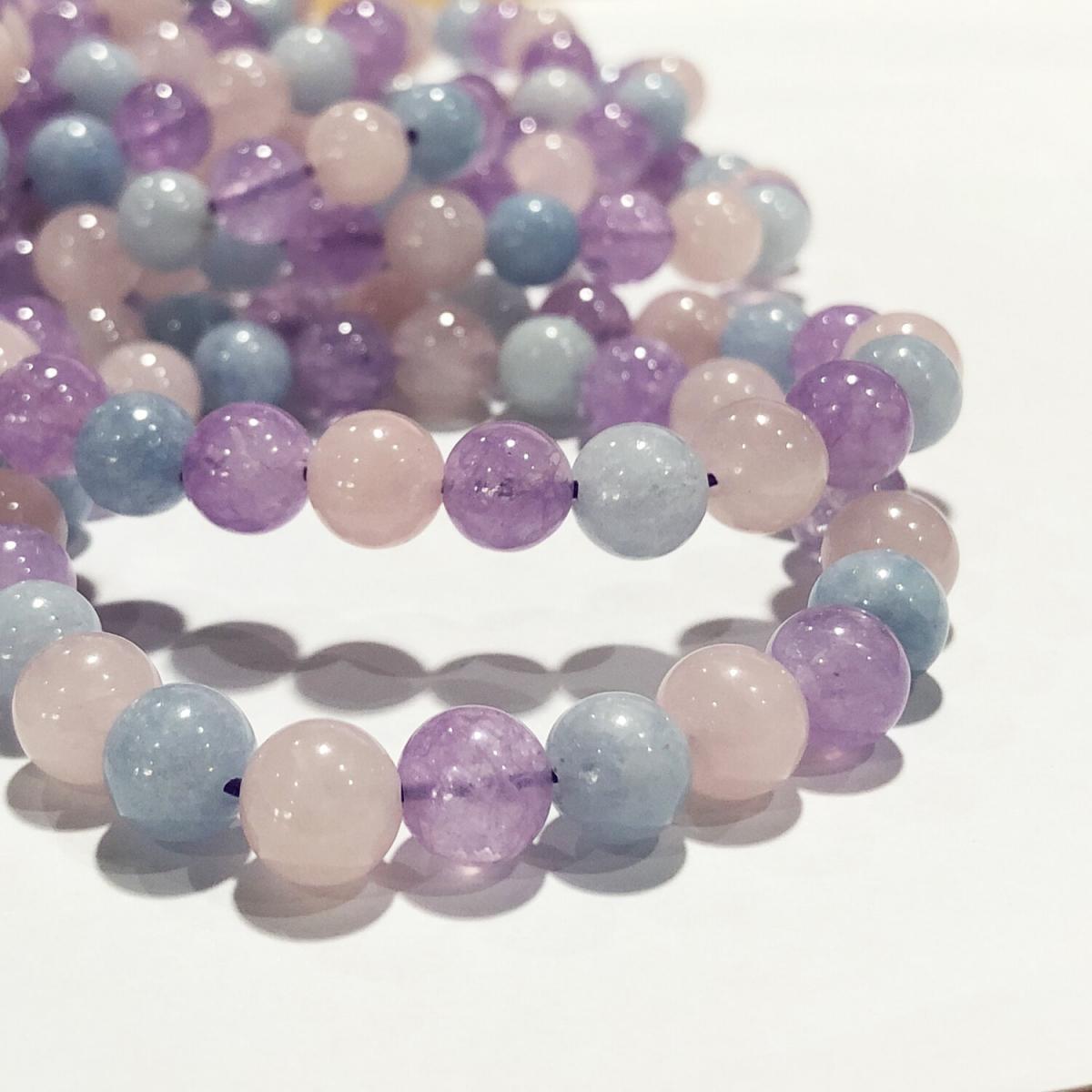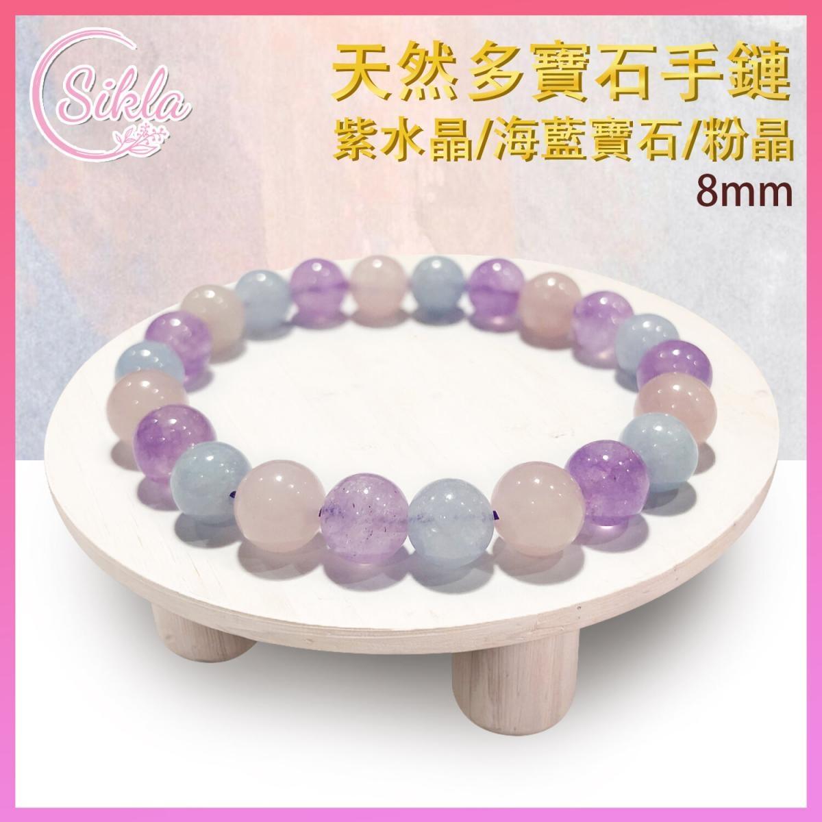 名稱 : 100%天然多寶石手鏈8mm(紫水晶、海藍寶石、粉晶)(SL-BL-8MM-MG31)