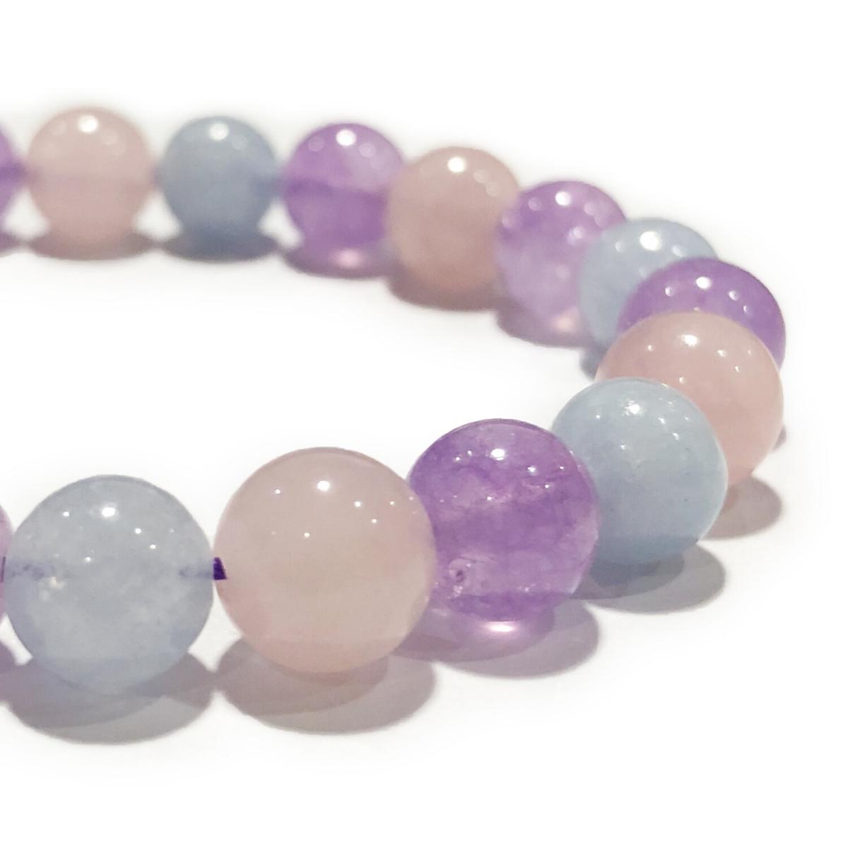 天然三水晶手鏈分別為紫水晶、海藍寶、粉晶珠子組成