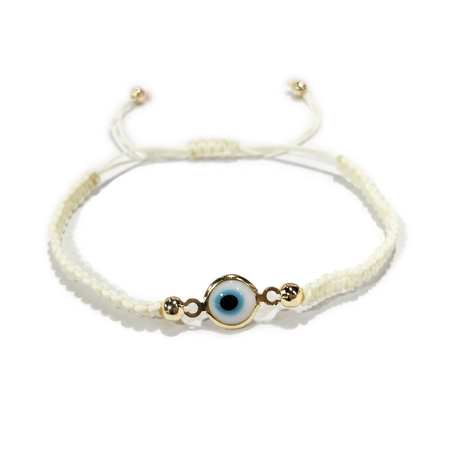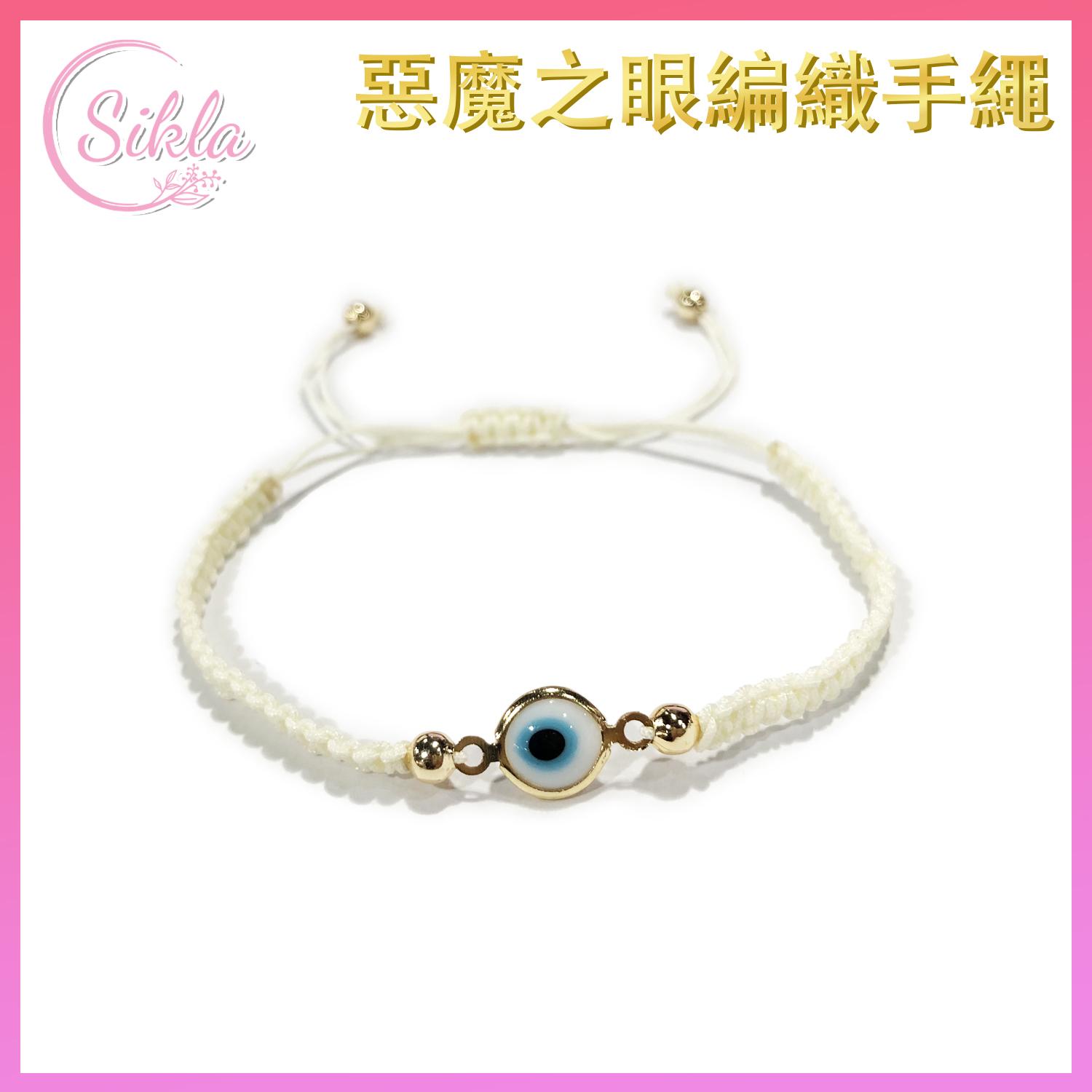 名稱 : 白色玻璃惡魔之眼編織手繩(SL-BL-EYEGWH)