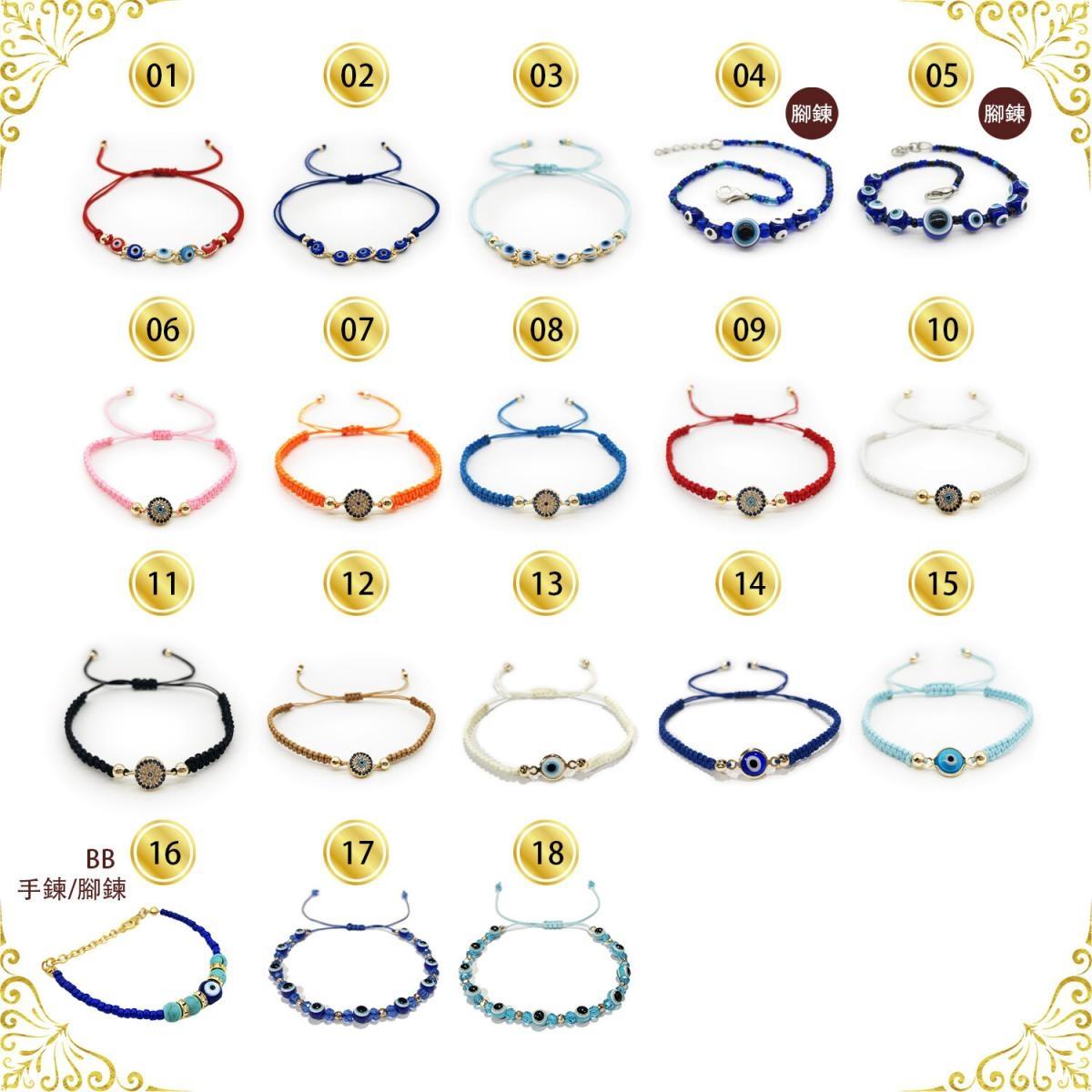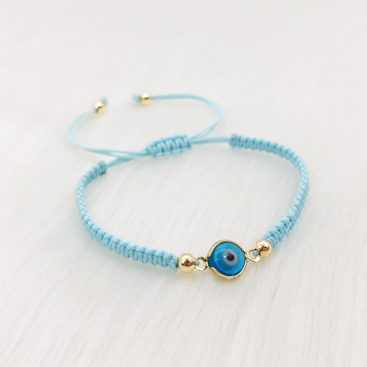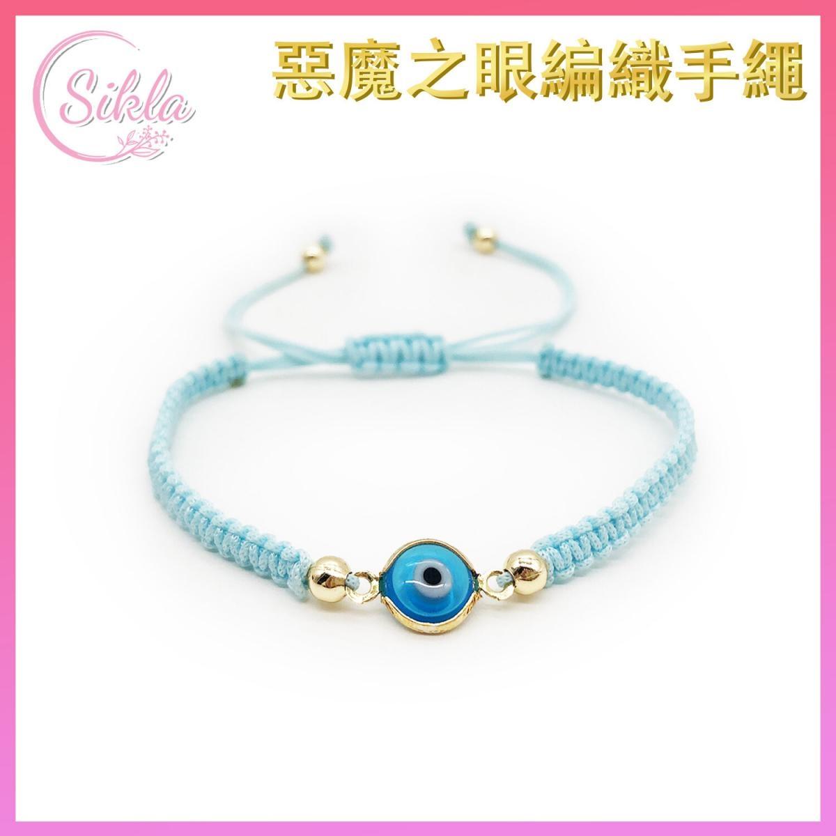 名稱 : 淺藍色玻璃惡魔之眼編織手繩(SL-BL-EYELB)