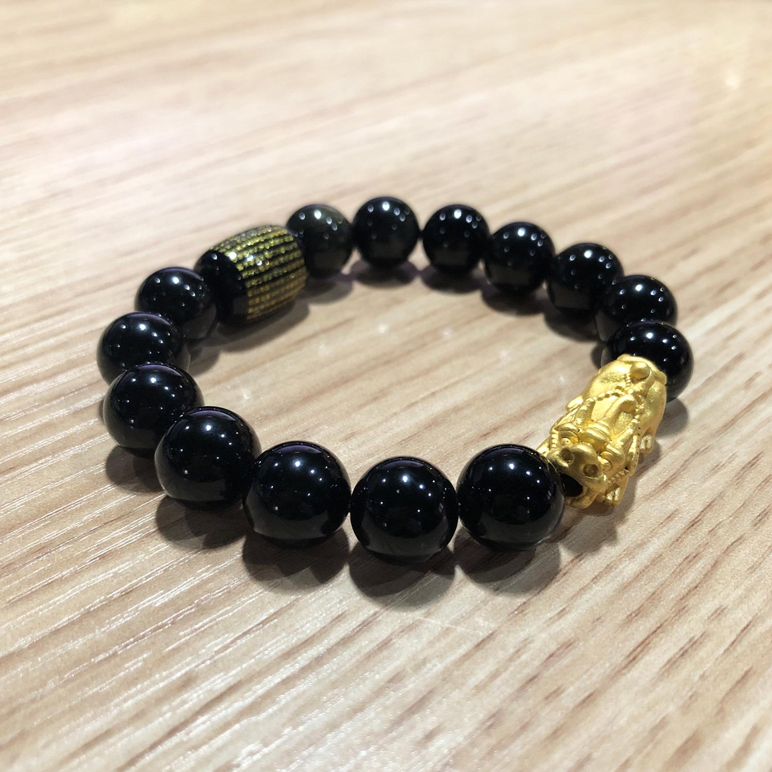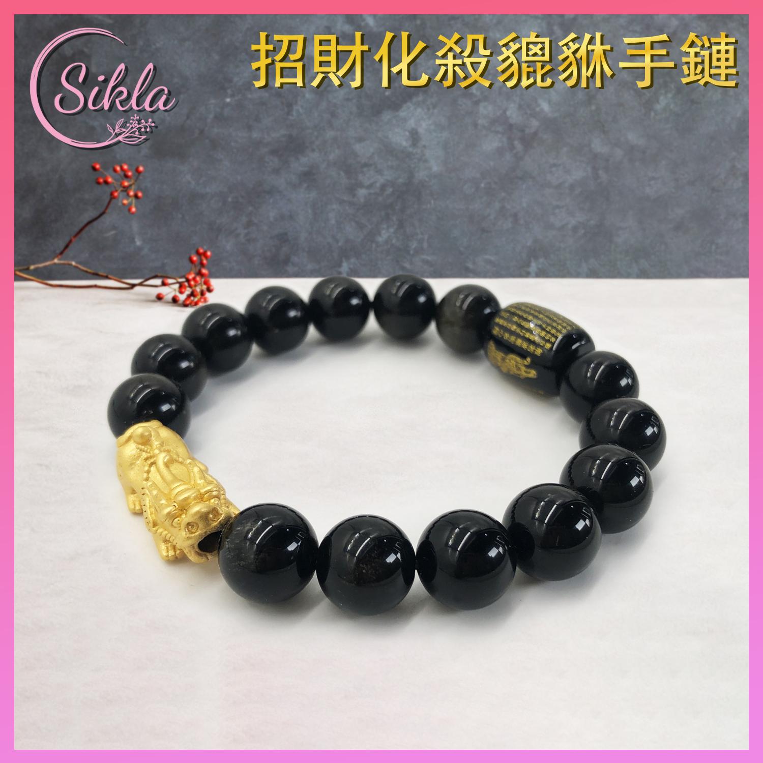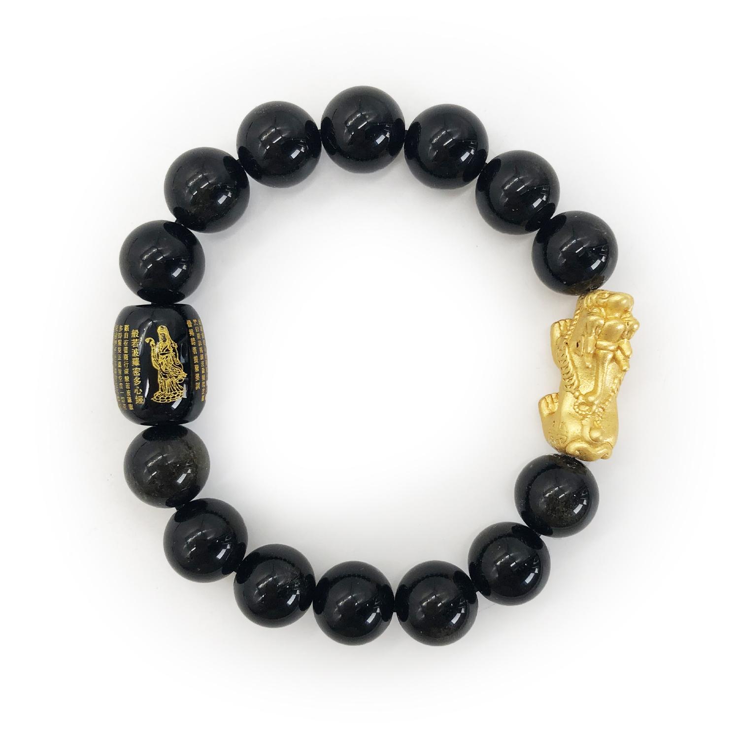 名稱 : 招財化殺金沙貔貅金曜石手鏈(配心經)(SL-BL-SD-12PX661)