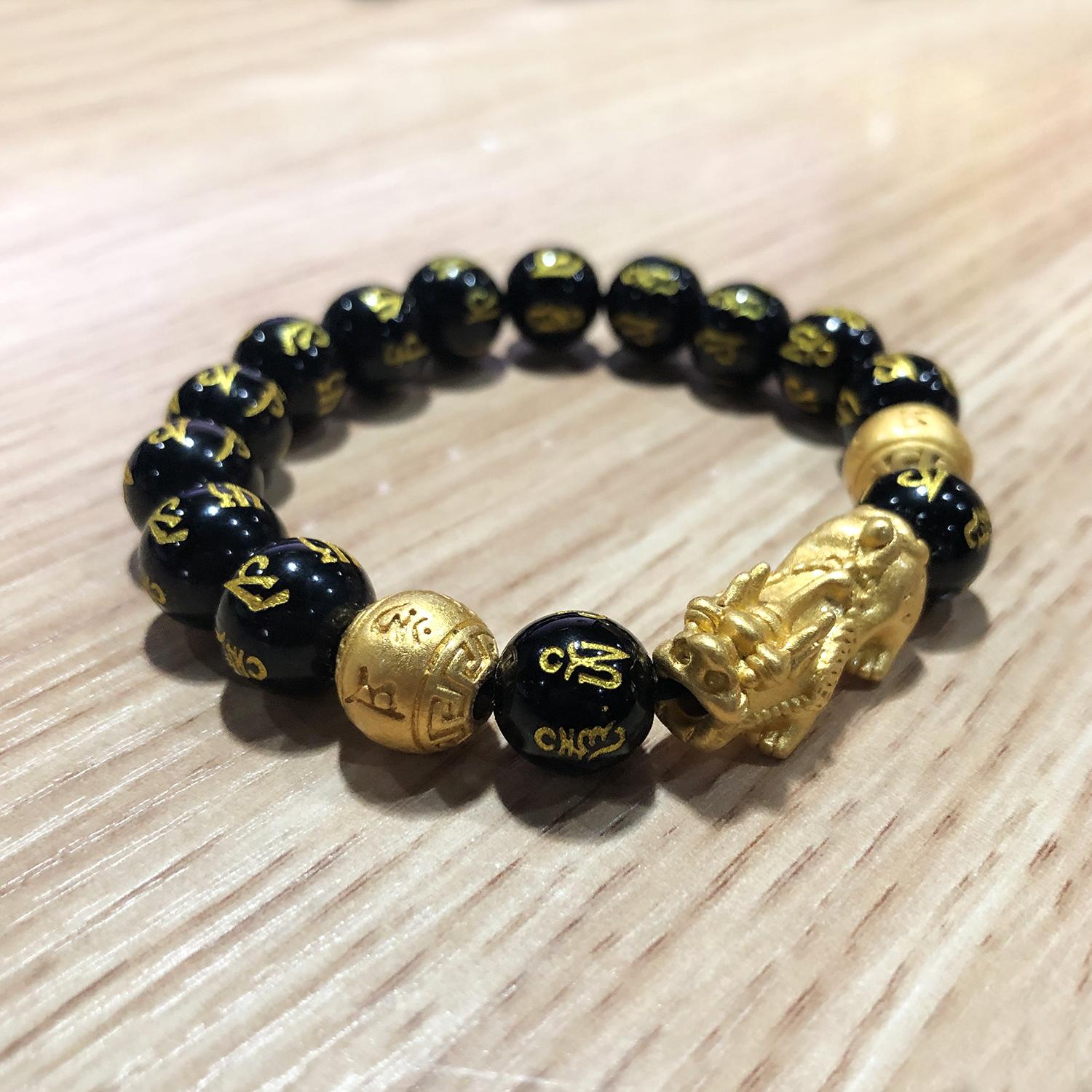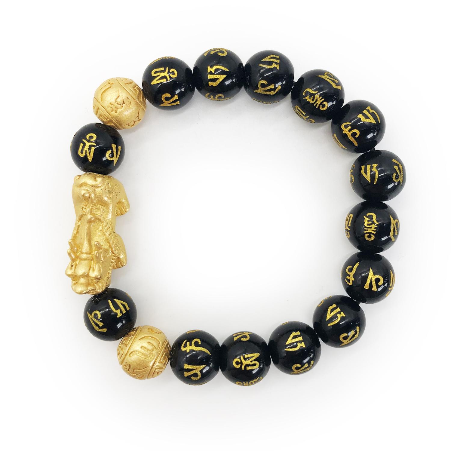 名稱 : 招財化殺金沙貔貅黑曜石手鏈(真言款)(SL-BL-SD-12PX662)