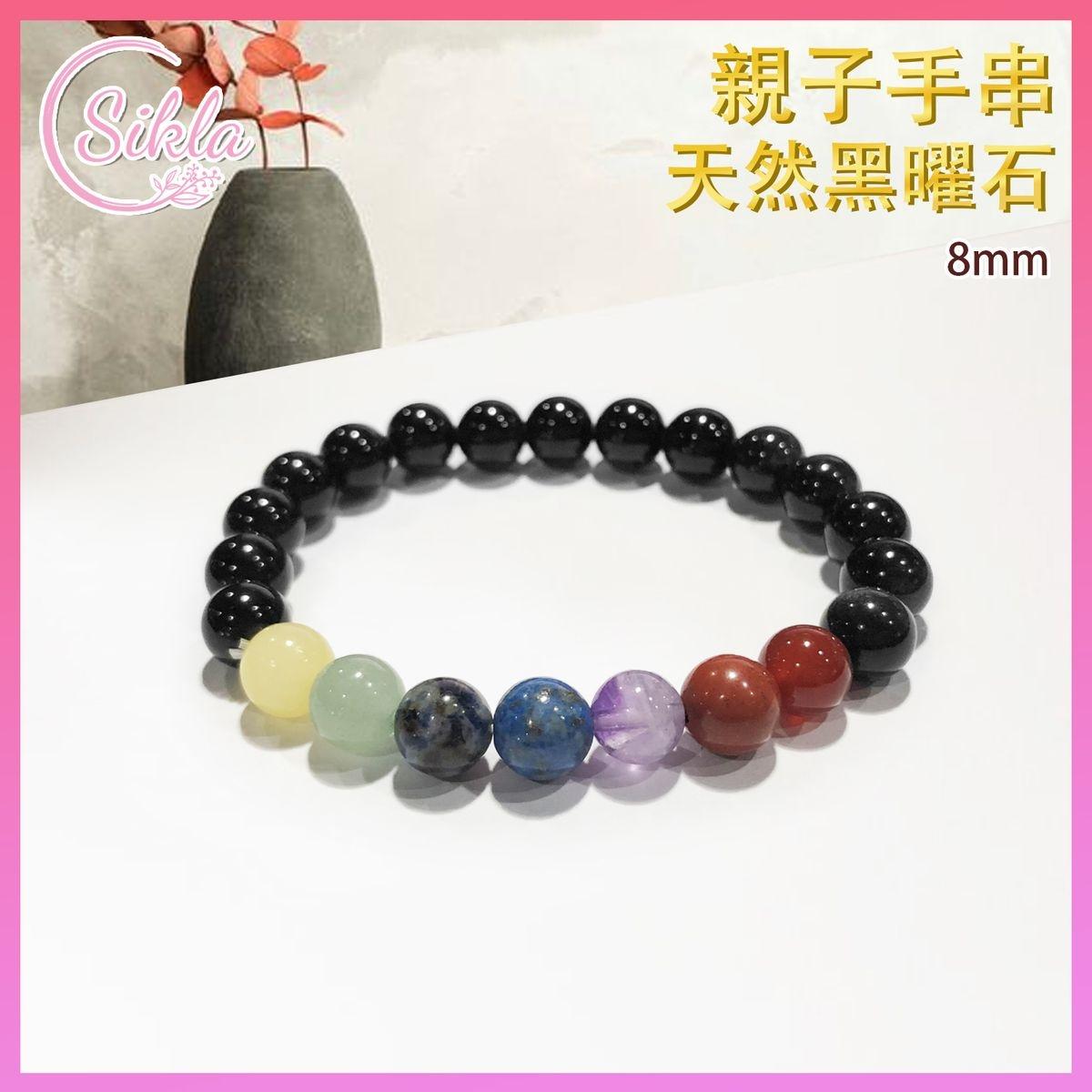 名稱 : 天然7脈輪配黑曜石手鍊(SLBL-7C-OSD-BK-0815)材質 : 七脈輪晶石 / 黑曜石長度 : 約5.5CM (未拉開計算) / 溶石闊約8MM(註明每粒珠可能有0.5mm誤差)(每塊石頭都是大自然的產物,顏色及形狀各不相同)特點 :---具有招財旺運的能量,而代表財富與智慧---可使人穩重,舒緩壓力,心平氣和,消除情緒困擾---可減壓辟邪的功效,並能吸收負面能量---可增強生命力、精神、體力,對用腦過度的平衡作用