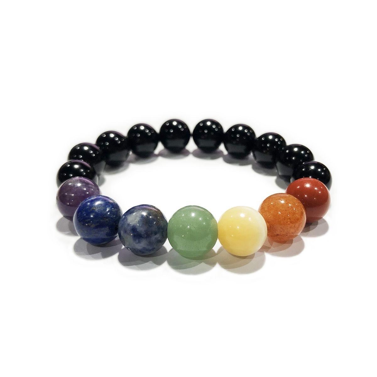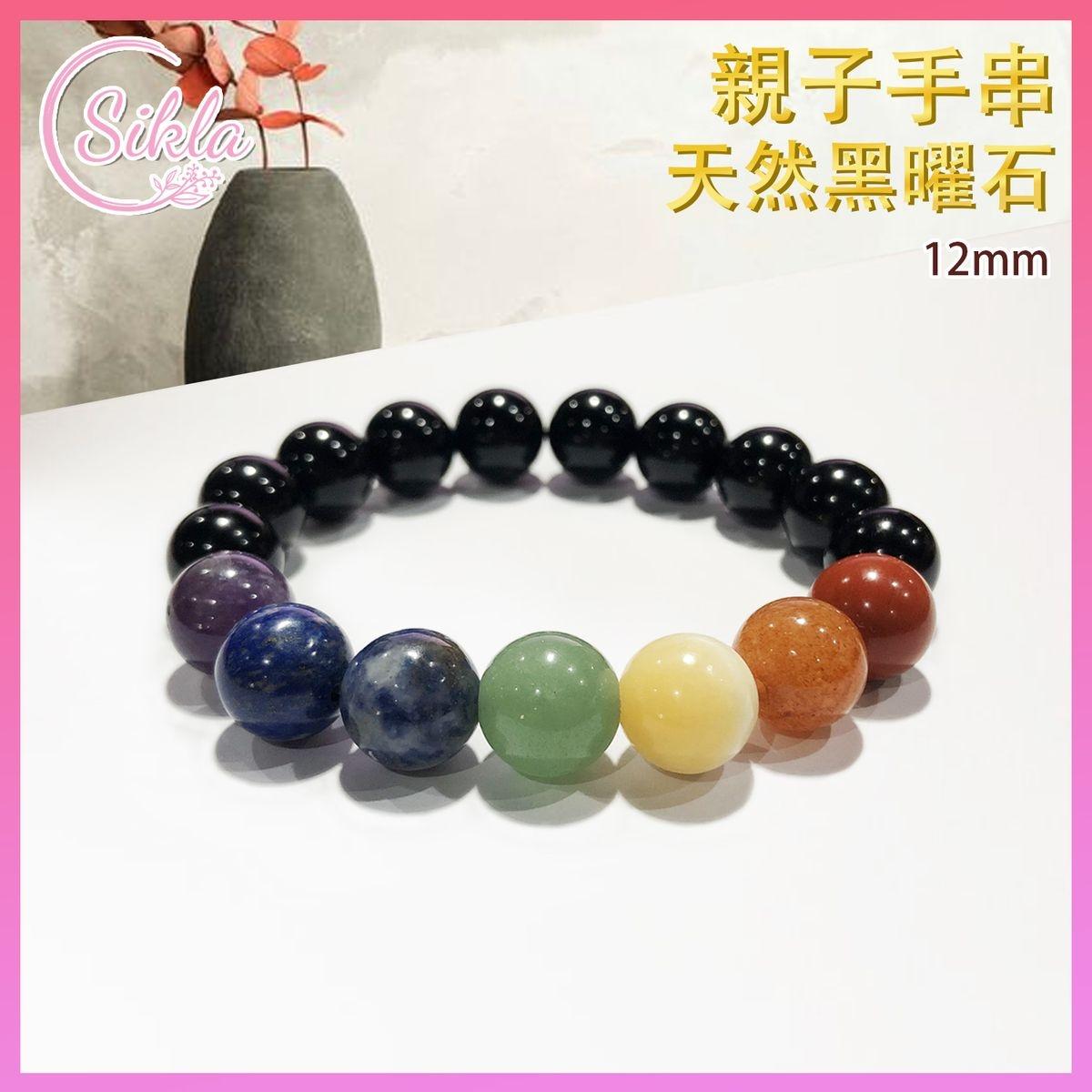 名稱 : 天然7脈輪配黑曜石手鍊(SLBL-7C-OSD-BK-1216)材質 : 七脈輪晶石 / 黑曜石長度 : 約5.5CM (未拉開計算) / 溶石闊約12MM(註明每粒珠可能有0.5mm誤差)(每塊石頭都是大自然的產物,顏色及形狀各不相同)特點 :---具有招財旺運的能量,而代表財富與智慧---可使人穩重,舒緩壓力,心平氣和,消除情緒困擾---可減壓辟邪的功效,並能吸收負面能量---可增強生命力、精神、體力,對用腦過度的平衡作用
